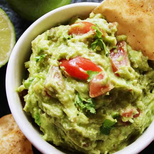 Store leftover guacamole in an airtight container in the refrigerator for up to 1–2 days. Pressing plastic wrap onto the surface helps reduce browning and keeps this simple guacamole recipe fresh.