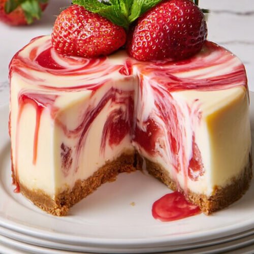 I still remember the first time I cut into this strawberry swirl cheesecake recipe. I stood in my tiny kitchen, holding my breath, wondering if the swirl would look neat or turn into abstract art. The knife glided through a creamy layer of cheesecake and that bright strawberry ribbon and I knew we had a keeper in our stack of Bake Cheesecake Recipes. This dessert takes everything I love about a classic recipe for cheesecake and dresses it up with real berries and a pretty pink swirl. It has the comfort of a strawberry cheesecake cake recipe, the fun of a strawberry cheesecake cups recipe, and the nostalgic flavor of a strawberry shortcake cheesecake recipe, all in one pan that feels simple enough for a busy weekday. If you have ever searched for an easy cheesecake recipe that still feels a little special, this one is for you. We bake the crust, pour in a smooth filling, swirl sweet strawberry sauce over the top, then chill until every slice is silky and rich. Nothing fussy, nothing tricky, just the kind of dessert Elena from Elena Cooks serves when friends drop by and no one leaves without asking for the recipe.