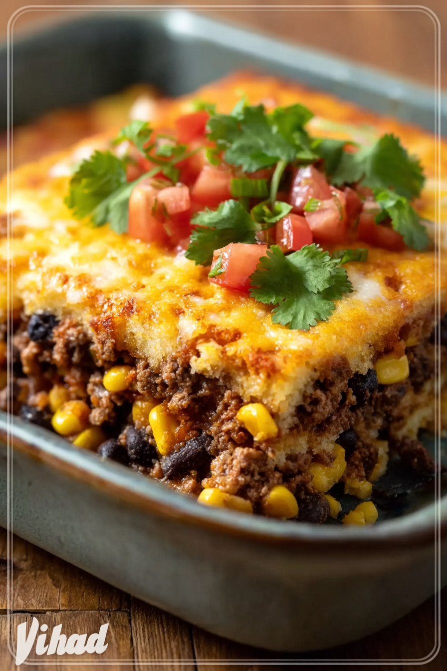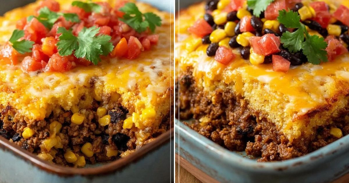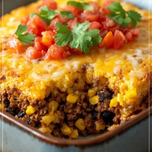 I grew up with a pan that fed everyone and made the house smell like a hug. This one does that job with a little swagger. We start with a rich beef and bean base, then cover it with a tender cornbread cap that bakes up golden and a tiny bit crisp at the edges. It is easy to carry to a neighbor or slide onto a weeknight table. Here we lean on Bean Casserole Recipes for a warm shortcut that still tastes like care. If you search for cornbread casserole recipe or best corn casserole recipe you will land right here anyway. Fans of easy corn casserole recipe will spot the comfort fast. The creamed corn casserole recipe idea helps the crumb stay soft and sweet. Think of it as a cornbread recipe with creamed corn baked over a hearty pot of supper. If you love cornbread recipes we are on the same team. I make it on chilly nights when people drift to the kitchen to peek under the lid. Cheese pulls, a little spice, and that soft crumb make everyone sit down without me asking.
