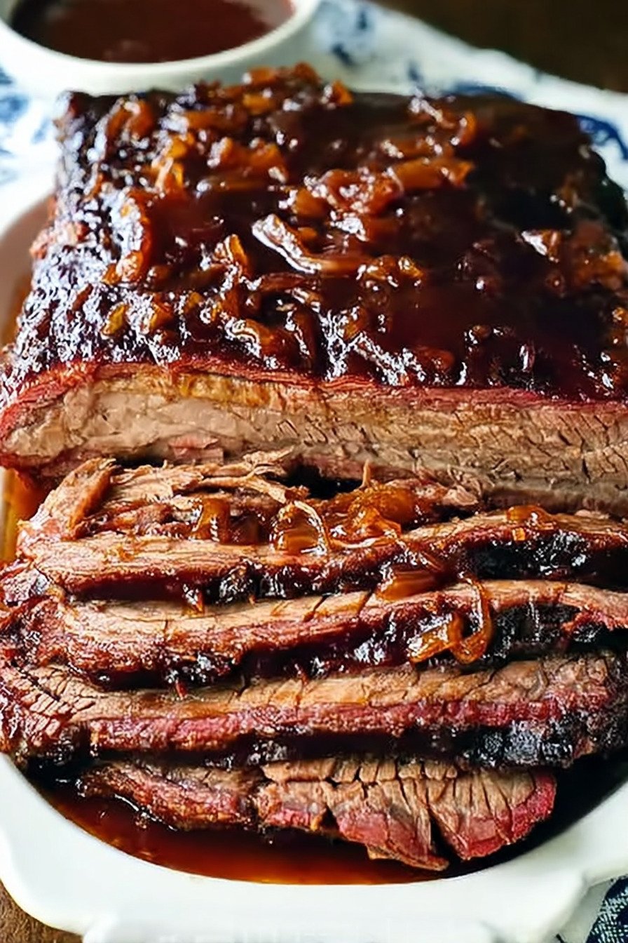 Step five Slice across the grain into thin slices. Spoon warm pan juices over the top. Serve with extra sauce. This method fits beef brisket recipes oven and lands a result that stays juicy and neat on the plate.
