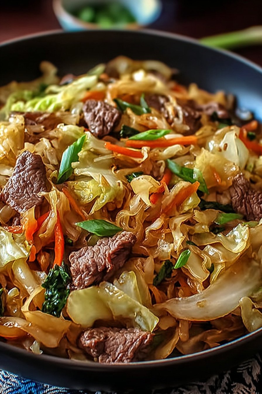 I cook for family and friends who like food that fills the plate yet feels light. This dish does that with lean beef and a bright crunch from cabbage. Short rest time lets sauce coat the meat and the thin ribbons of veg. The skillet looks glossy and neat.