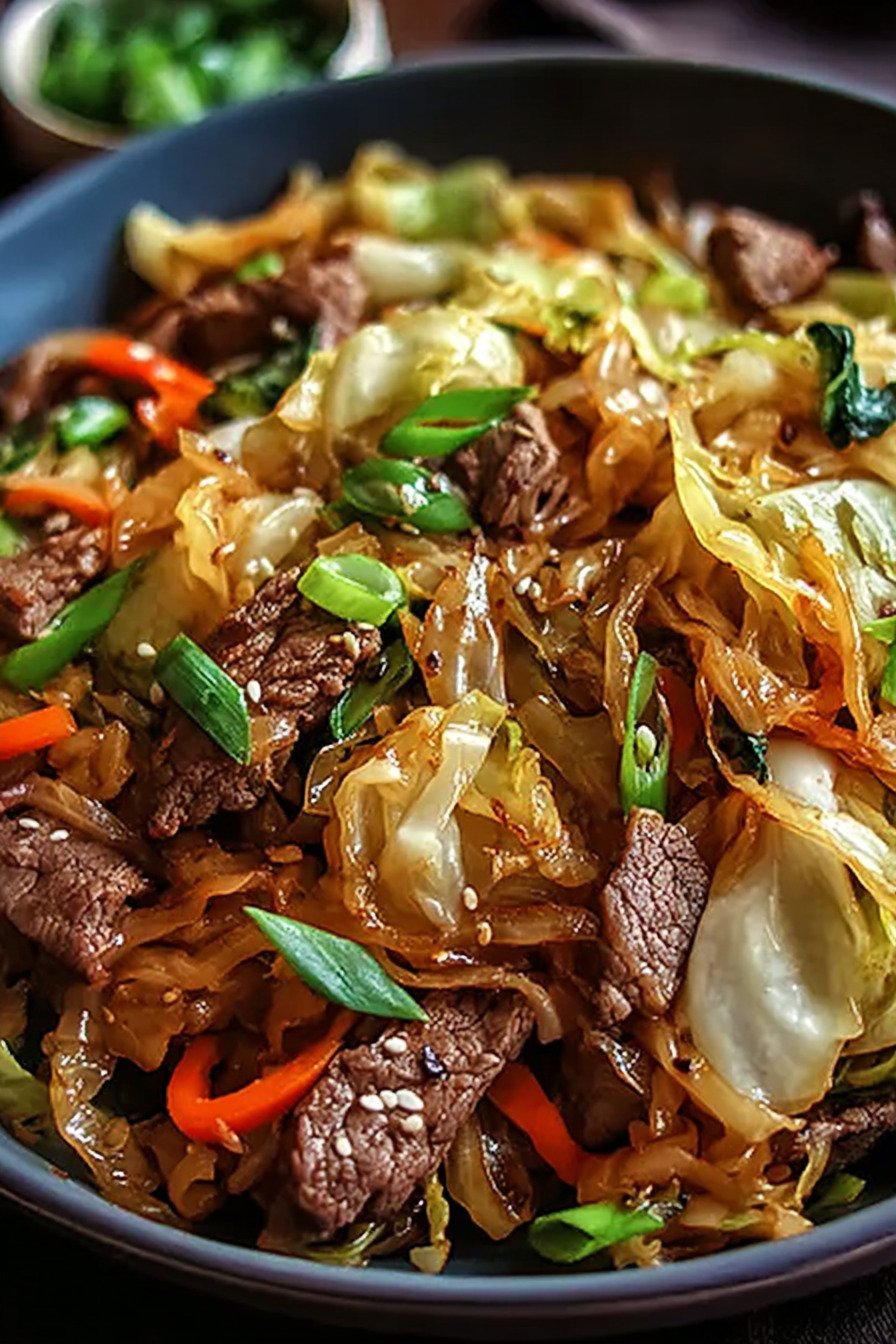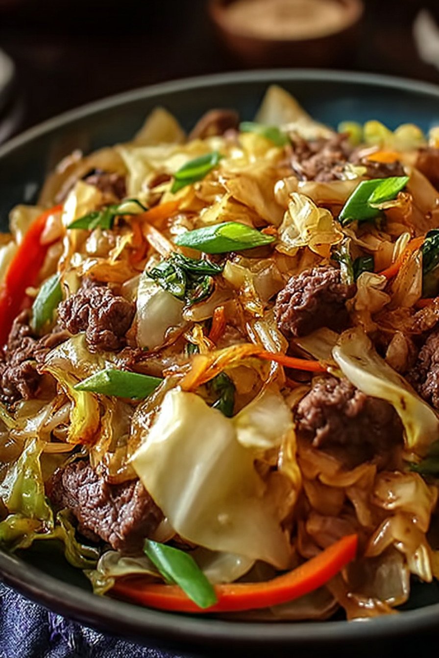 I brown beef, add cabbage, and let the pan soften the edges. The sauce hugs each strand and keeps the bite bright. I serve bowls with rice or keep things light with tender cabbage only.