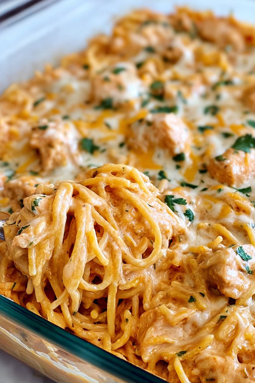 If you’re searching for comforting and satisfying Chicken Pasta Recipes, this Best Chicken Spaghetti Recipe is exactly what you need. It combines tender chicken, creamy sauce, and perfectly cooked pasta into one irresistible dish. Whether you love classic Baked Chicken meals or rich Alfredo Pasta Recipes, this recipe delivers the best of both worlds in one hearty bake. This dish is also a great option if you enjoy easy Baked Pasta Recipes that can feed the whole family. Using Boneless Skinless Chicken Breast Recipes makes it both convenient and delicious, while still delivering a rich, indulgent flavor. Plus, if you’re a fan of Air fryer recipes chicken, you can easily adapt the chicken preparation for extra crispiness before adding it to the pasta. Among all Chicken Pasta Recipes, this one stands out thanks to its creamy texture and cheesy finish. It blends the richness of Alfredo Pasta Recipes with the comfort of baked casseroles, making it a go-to meal for weeknights or gatherings. If you love Baked Chicken and crave something filling yet easy, this recipe will quickly become a favorite in your kitchen.