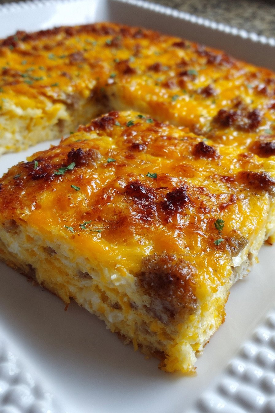This breakfast casserole is the dish I pull out when the house feels sleepy and the coffee has not kicked in yet. I stir together hashbrowns, sausage, eggs and cheese, slide the pan into the oven and let the smell do the work of waking everyone up. It feels relaxed, a little messy and very real, the way a slow morning should feel, and that simple ritual always steadies the day. I love that this pan can change with the day. Some weekends I keep it classic. Other days I lean into a lighter mood and plan a Vegan Breakfast Casserole version for friends, or I mix up a quick Breakfast Casserole With Bisquick on a weekday when time feels tight. The same cozy base still works for any Savory Breakfast craving that wanders through the kitchen, and the whole pan feels friendly and low pressure. Over time this simple bake has earned a spot with my best casserole recipes and lives right next to my most loved easy casserole recipes and vegetable casserole recipes. The pieces reheat well, pack nicely into lunch boxes and win over sleepy guests who wander in wearing slippers and asking what smells so good. I like to sneak one square for myself at the counter before the pan hits the table.