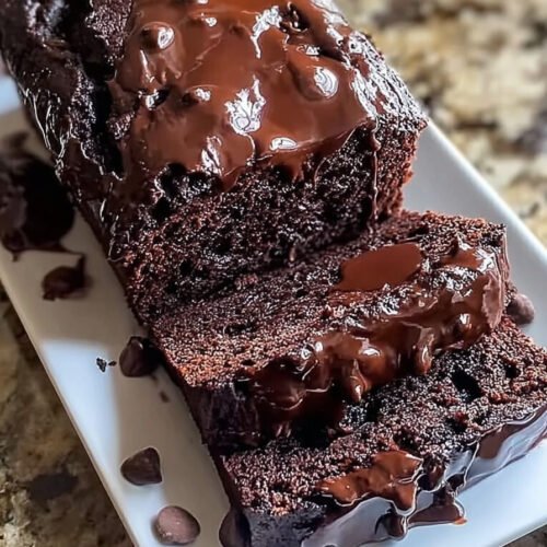 Cool before slicing. A warm loaf holds shape and cuts clean. Warm a slice later for a soft center and a glossy top from the fudge.