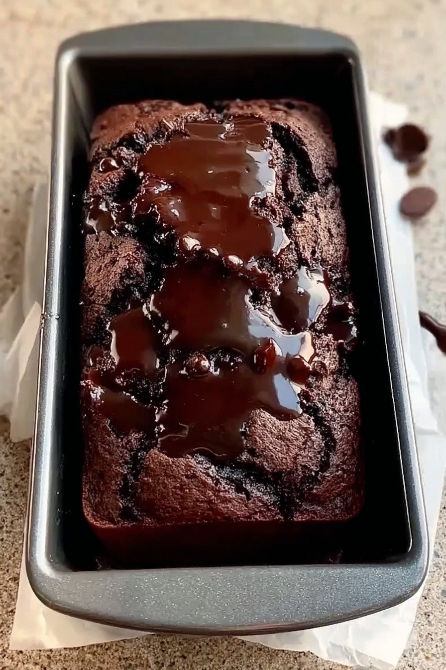We keep this loaf simple. We lean on pantry cocoa and warm fudge. We get a tender crumb and a glossy top.