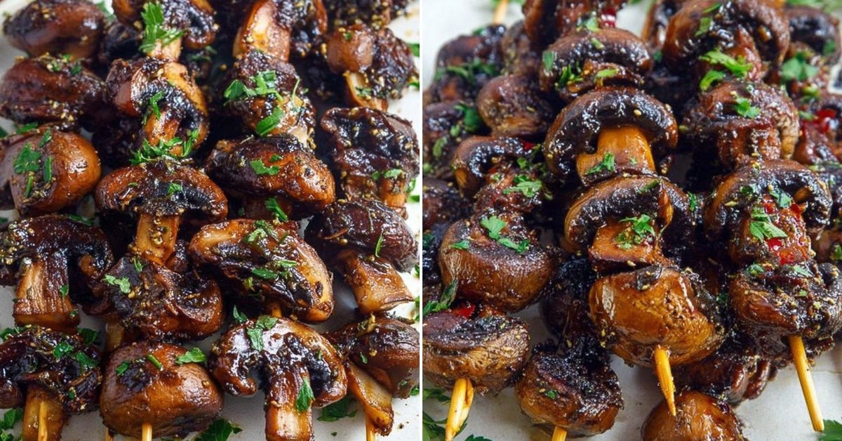 Grilling Recipes Balsamic Garlic Mushroom Skewers