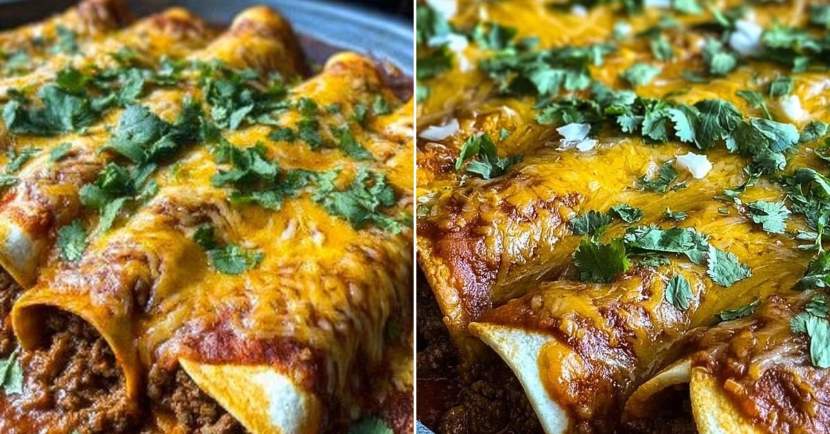 Mexican Food Recipes Cheesy Beef Enchiladas with Red Sauce