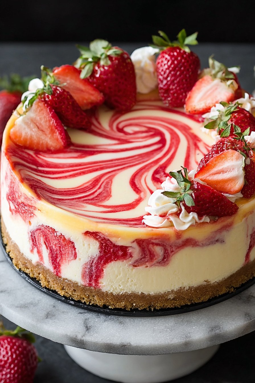 9 Strawberry Swirl Cheesecake