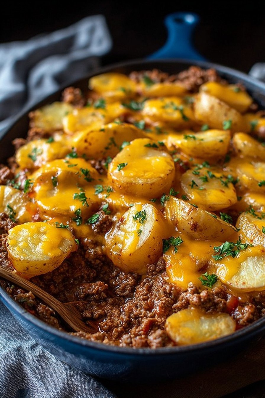 When it comes to comforting and reliable Beef Skillet Recipes, Cheesy Ground Beef and Potatoes stands out as a true classic. It brings together the richness of seasoned beef, the heartiness of potatoes, and the irresistible melt of cheese in one pan. This dish is designed for simplicity without sacrificing flavor, making it a go-to option for anyone looking for quick yet satisfying Baked Dinner Ideas.