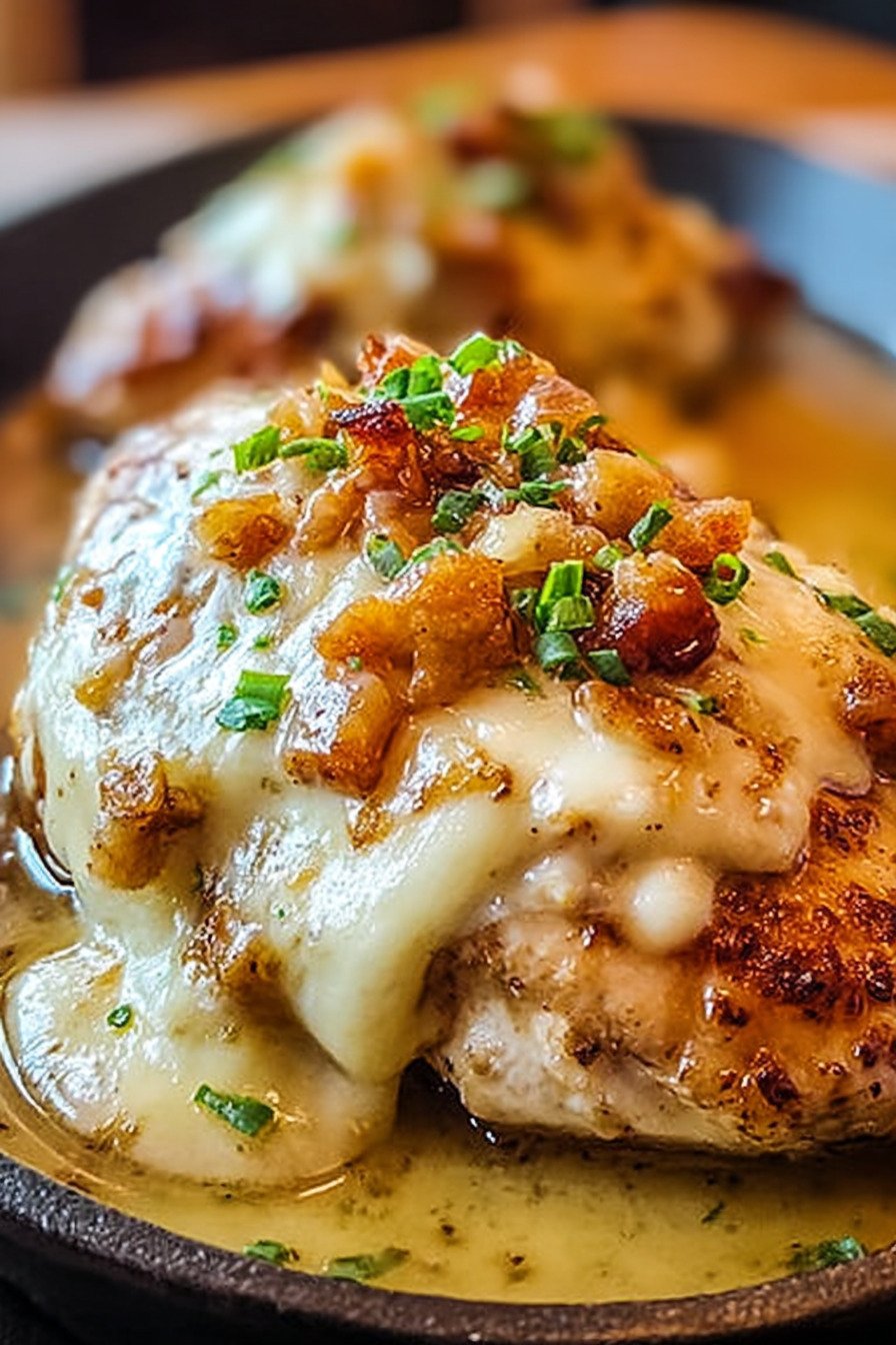 I love meals that feel like comfort food but cook like a weeknight dinner. This dish gives you tender chicken, buttery mushrooms, sweet onions, and a thick layer of melted cheese in one skillet. You get big flavor without a long prep list.