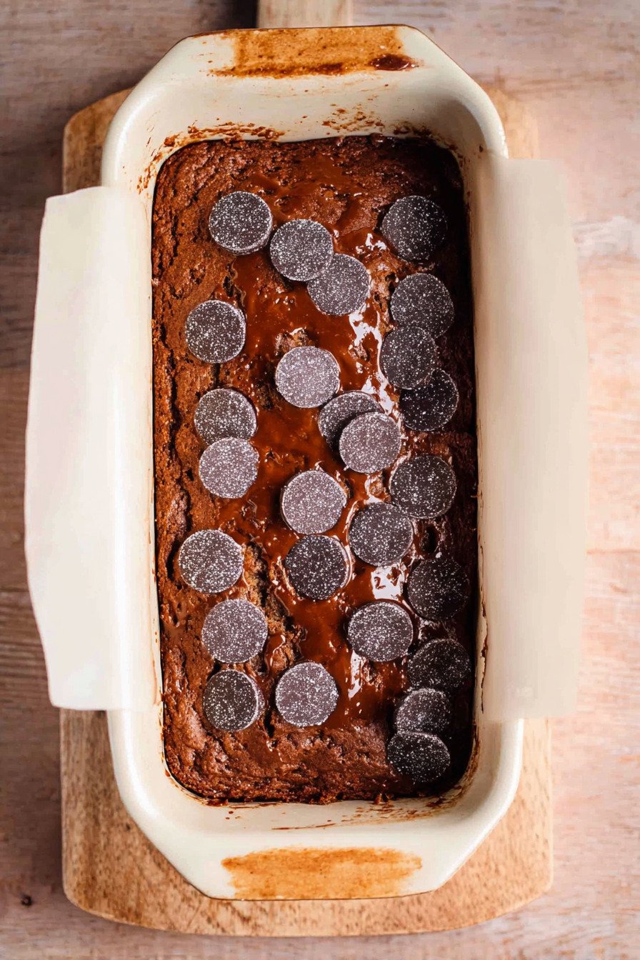 Watch the bake. If the top colors fast, tent with foil near the end. Let the loaf rest before slicing. The pieces hold shape and the chocolate sets just enough for clean cuts.