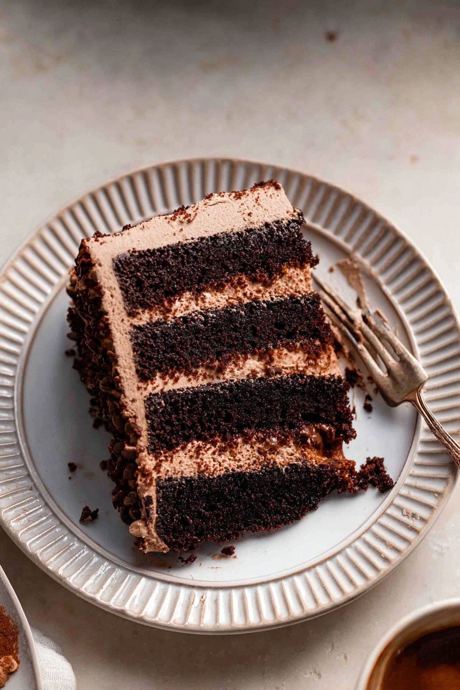 For flavor play add a thin ring of sliced berries on the middle layer for a strawberry chocolate cake moment. For texture add small chocolate bits over the frosting. For a lighter profile use a milk chocolate cake recipe frosting by swapping some cocoa for melted milk chocolate which brings a softer finish.