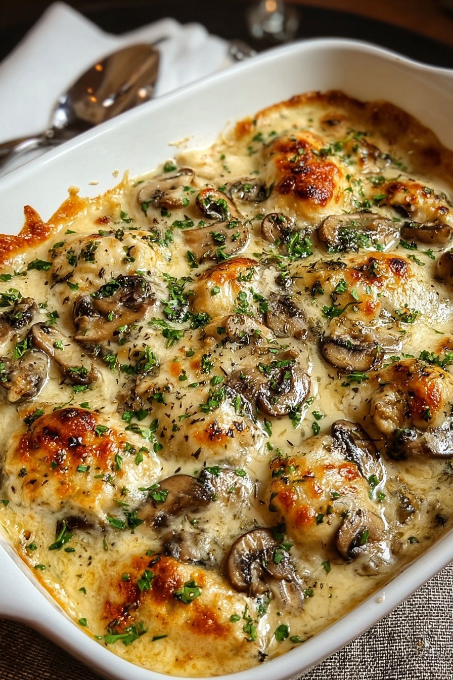 Comfort Chicken Recipes: Keto Garlic Mushroom Chicken Casserole