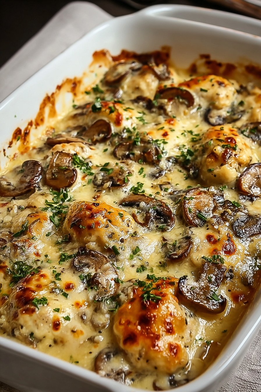 Looking for a new spin on comfort chicken recipes? This keto garlic mushroom chicken casserole is the perfect low-carb comfort dinner. You get all the cozy vibes without the carbs. It’s creamy, it’s cheesy, and it’s chicken in the spotlight. A dish that’ll make you think you’re indulging, but your waistline will thank you later! No guilt here, just pure comfort. Plus, this one works great for busy weeknights or a relaxing weekend meal. From the moment you smell the garlic and mushrooms sizzling together, you’ll know this isn’t your average casserole. The chicken stays tender while soaking up the rich flavors from the sauce, and the cheese gives it that perfect melty goodness we all crave. Whether you’re making it for yourself or a crowd, this recipe has you covered. Trust me, it’s the chicken dinner you’ll want to keep in your rotation. And who says comfort food can’t be healthy? Low-carb, keto-friendly, and packed with flavor — this is a chicken dinner you won’t feel guilty about. We’re talking all the classic flavors we love in a cozy meal, but made just a little bit smarter for the body-conscious foodie. Welcome to my kitchen, and get ready to dig in.