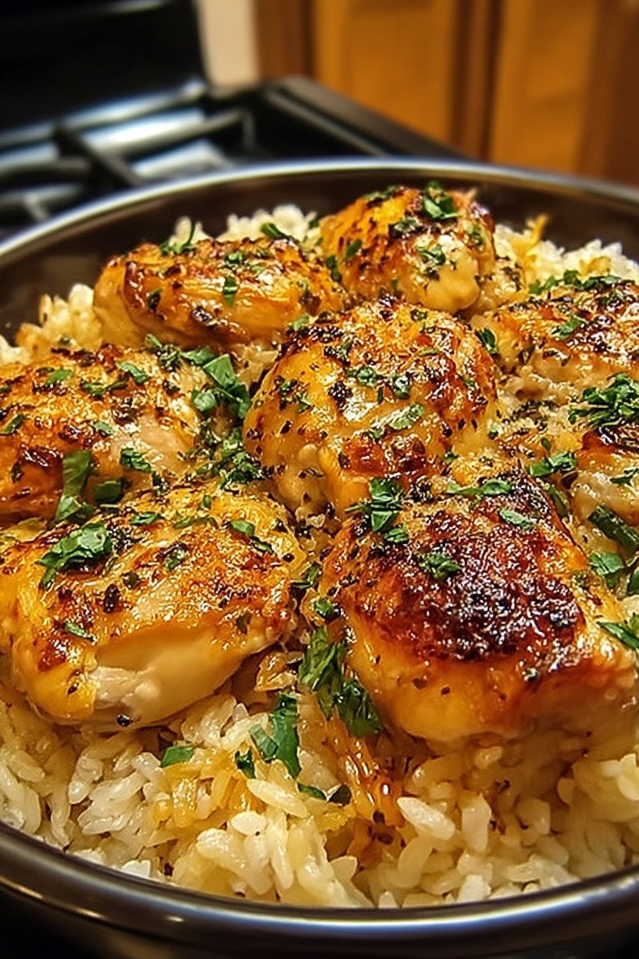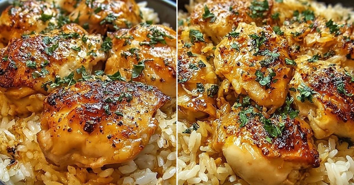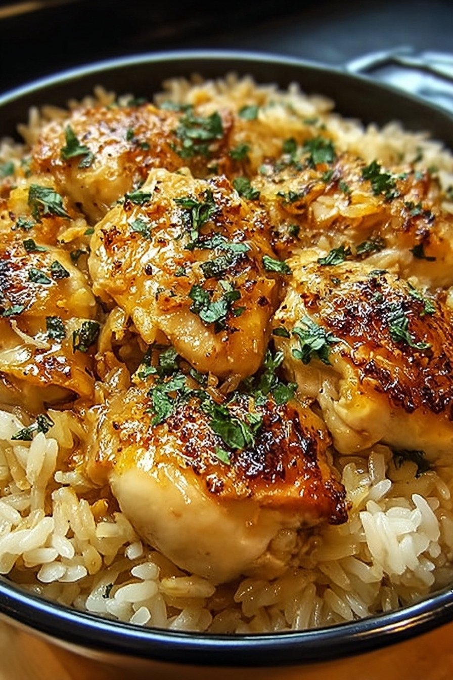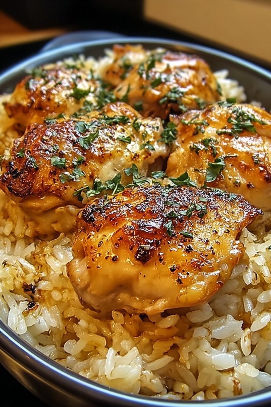 The flavor leans savory with soft onions from the soup mix, rich creamy sauce around the rice, and juicy chicken on top that soaks in that flavor as it cooks. Leftovers taste just as good the next day, so this pan works for family dinners, easy meals for two, or lunches that just need a fast reheat. It is the kind of quiet keeper recipe that slowly becomes part of your personal list of trusted comfort meals.