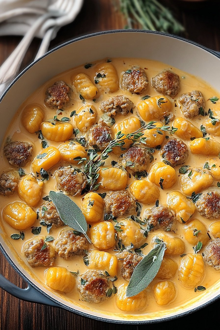 Use a wide skillet. Space helps the squash caramelize in spots and prevents steaming. Stir with a gentle hand to protect the soft dumplings. For a different twist try a squeeze of lemon at the end for brightness. For a meat free version skip the sausage and add mushrooms. The sauce still feels rich and the bowl still satisfies a strong appetite.