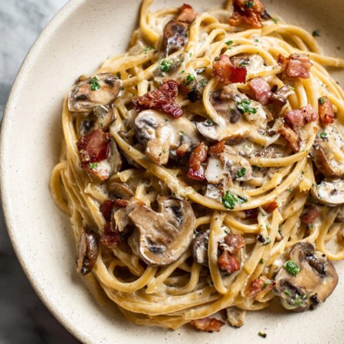 • 9 Creamy Bacon Mushroom Pasta