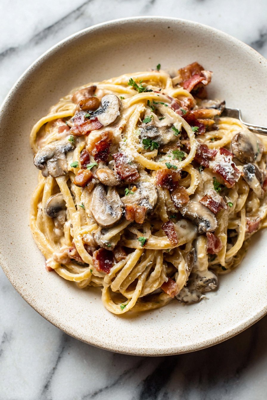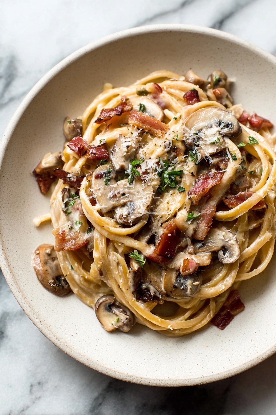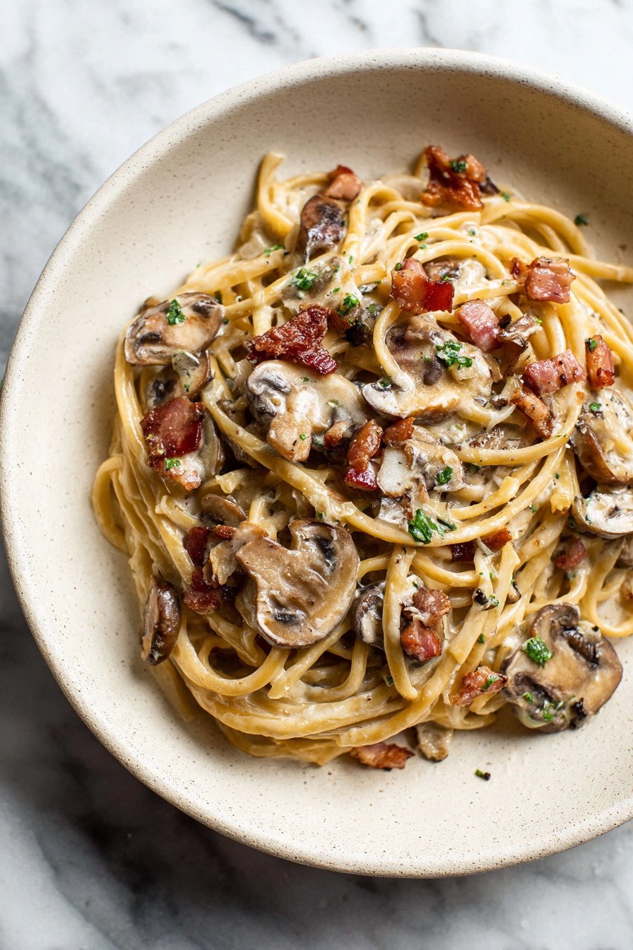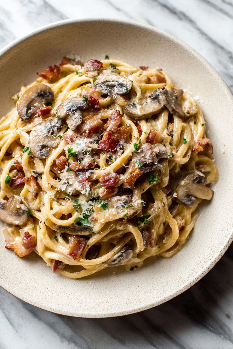 If you like meal prep you can crisp bacon and brown mushrooms a day ahead. Store each in a small box. Reheat in the skillet and finish the sauce. Fans of creamy pasta recipes will like this flexible path. It saves time and keeps flavor bold.