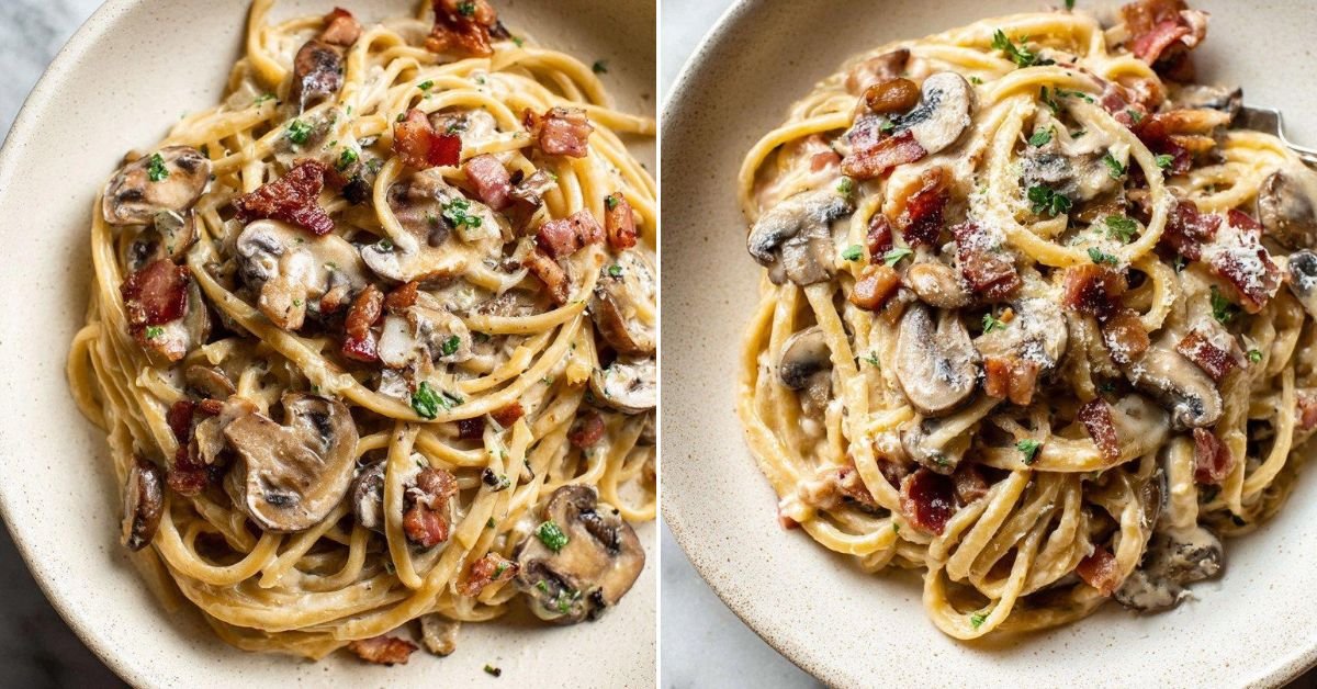 • 2 Easy Creamy Bacon Mushroom Pasta Recipe