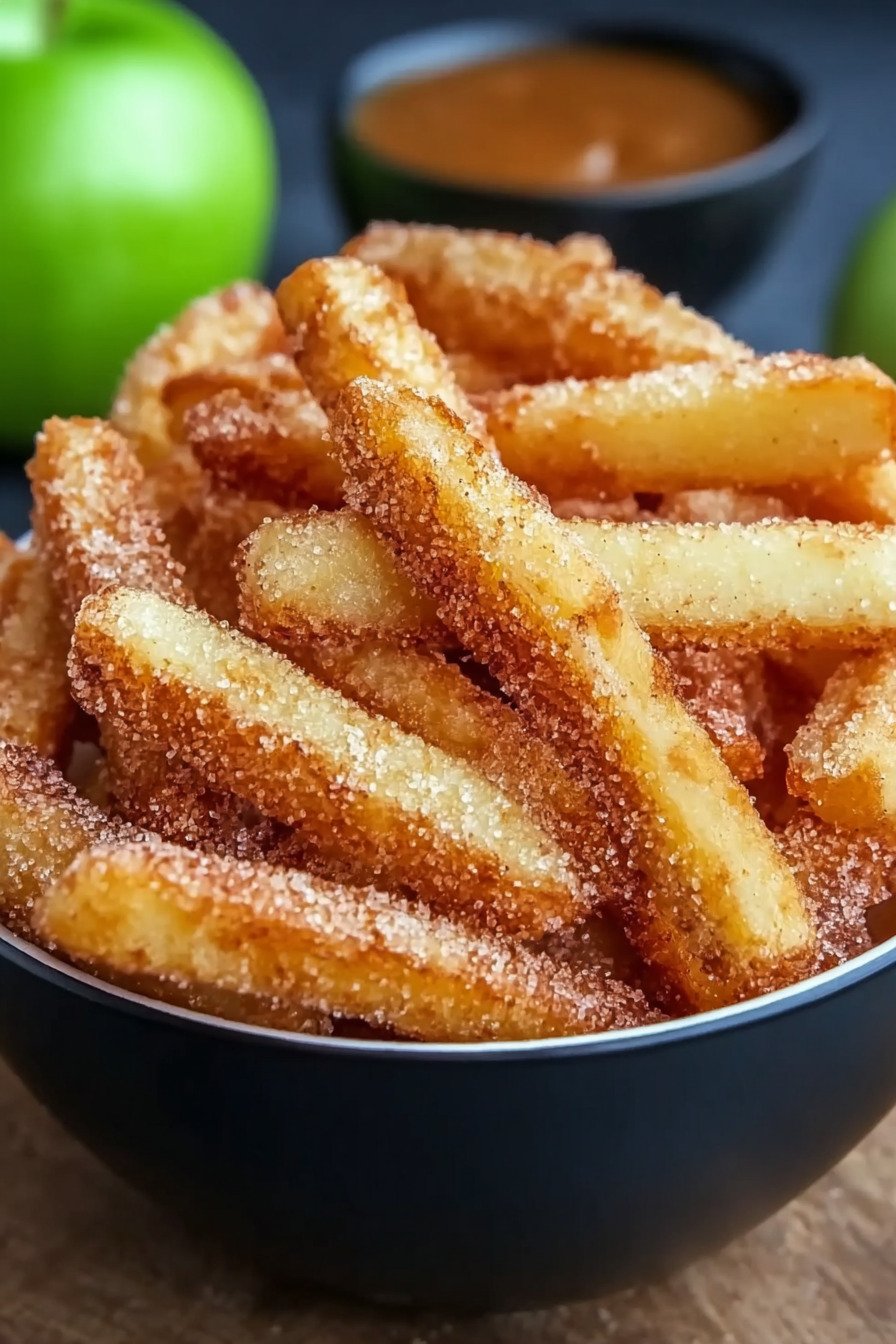 I make these apple fries when I want a starter that feels playful and light. We slice sweet apples, coat them, and let hot air do the work. The result is a tray of crisp sticks with a warm center. They taste like a fair day and a cool night met at my table. This fits right into Appetizer Recipes and it pulls from Air Fryer Recipes. You get the feel of Apple Desserts with the snap of Crispy Snacks. They pass as Healthy Appetizers and they scratch that craving for Fruit Fries. We keep the steps simple so it lands in Easy Appetizer Recipes. I serve a small bowl of yogurt or a light caramel dip. I like to grab one, breathe in the spice, and hear that soft crunch. If a plate comes back empty, we call that good work.