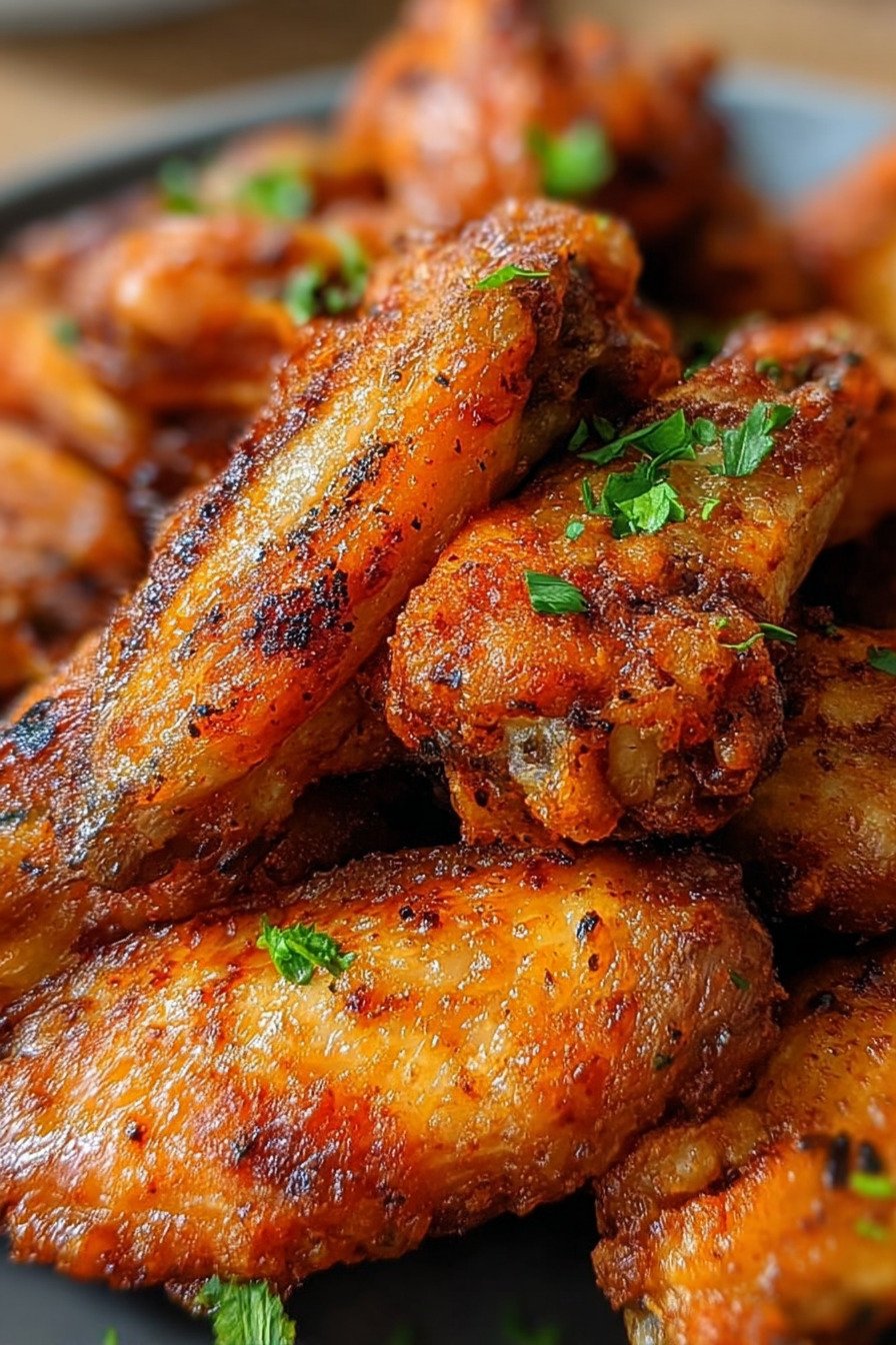 Dry the wings well. The drier the skin, the louder the crunch. Paper towels do the job. A short chill on a rack helps even more.