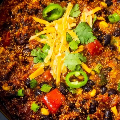I make this cozy chili when I want a bowl that eats light and still tastes bold. It sits in the slow cooker while the quinoa softens and the black beans turn silky. The mix gives steady energy and a clean finish. It fits Low Calorie Soup Recipes and keeps me happy on busy nights. We pack in veggies and warm spice, then let time do the work. Friends ask for seconds and I act surprised. They spot ideas from a 13 bean soup recipe and even a 16 bean soup recipe. I love how small tweaks lead to big comfort. If you chase calm flavor that treats you well, this pot delivers. It brings the ease of Broccoli Soup Crockpot thinking, carries the gentle feel of Antiinflammatory Soup, and plays nice with Brócoli Cheddar Soup fans who want a meat free day. For meal plans, it sits right beside Cauliflower Dinner Recipes and keeps the week on track.