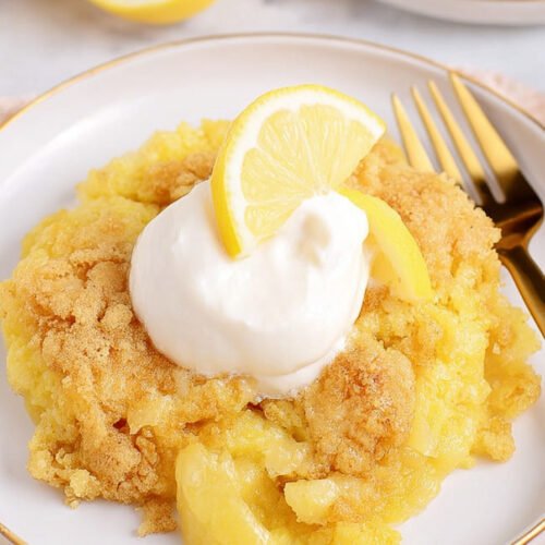 Let me tell you, this lemon dump cake is one of those recipes that feels almost too easy, but the results will have people thinking you’ve been baking all afternoon. I first made it on a Sunday when I wanted something sweet without turning the kitchen into a disaster. Three ingredients later, and suddenly my whole house smelled like a bakery that specialized in sunshine. This is one of those dump cake recipes that’s so versatile, you can swap flavors or keep it classic with lemon. I’ve tried versions of strawberry dump cake recipes and they’re lovely, but the lemon has that balance of tart and sweet that wakes up your taste buds. It’s probably the best lemon cake recipe I’ve put together without measuring a dozen things. It’s also one of my favorite lemon cake mix recipes because you just let the mix do the heavy lifting while you take the compliments. If you love an easy lemon pound cake recipe but don’t feel like waiting around for the oven timer while juggling a bunch of steps, this cake will win you over. It’s the kind of cake mix dump cake that goes from pantry to plate in less than an hour, and honestly, it’s hard not to sneak a bite while it’s cooling. Trust me, you’ll want this one in your back pocket for last-minute guests or when your sweet tooth shows up unannounced.