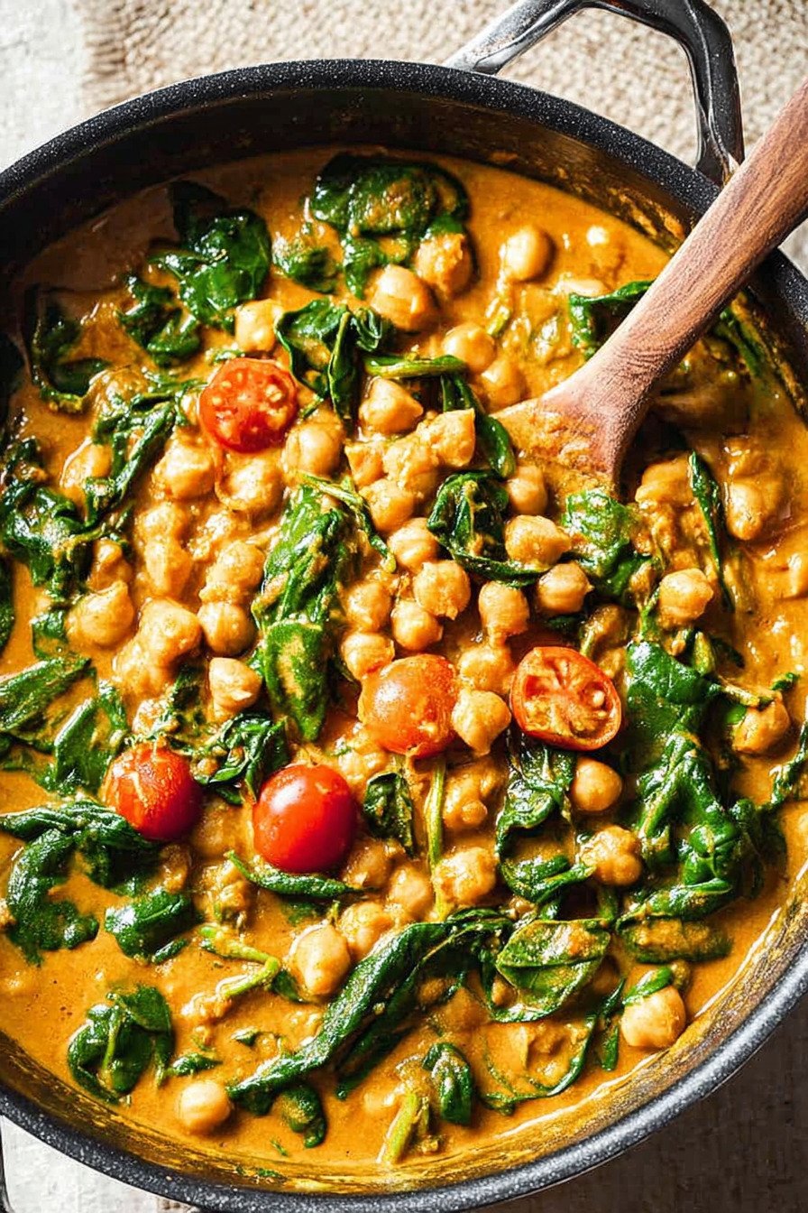 If you want to customize the texture, you can mash a small portion of the chickpeas directly into the sauce. This thickens the curry naturally and creates an even creamier finish. You can also swap fresh spinach for frozen spinach if that is what you have on hand, just make sure to thaw and drain it well so the sauce does not become watery.