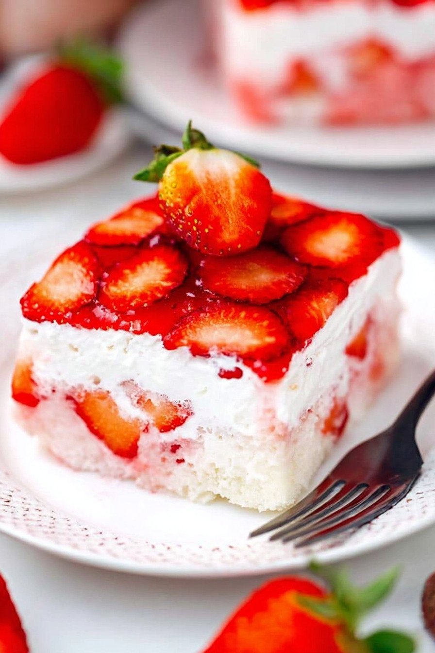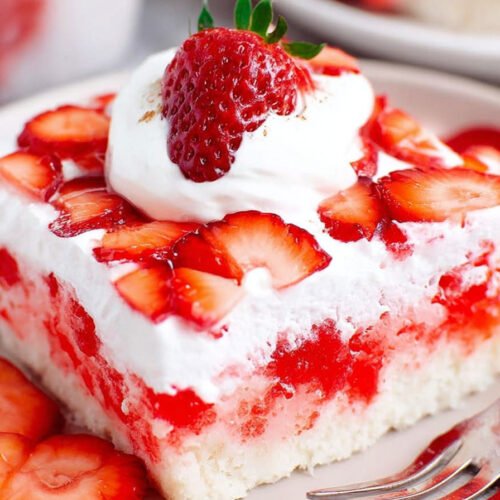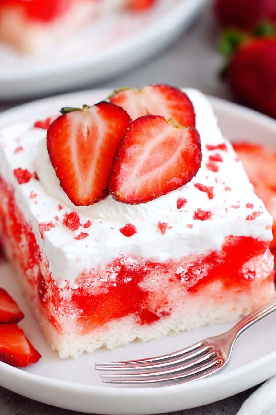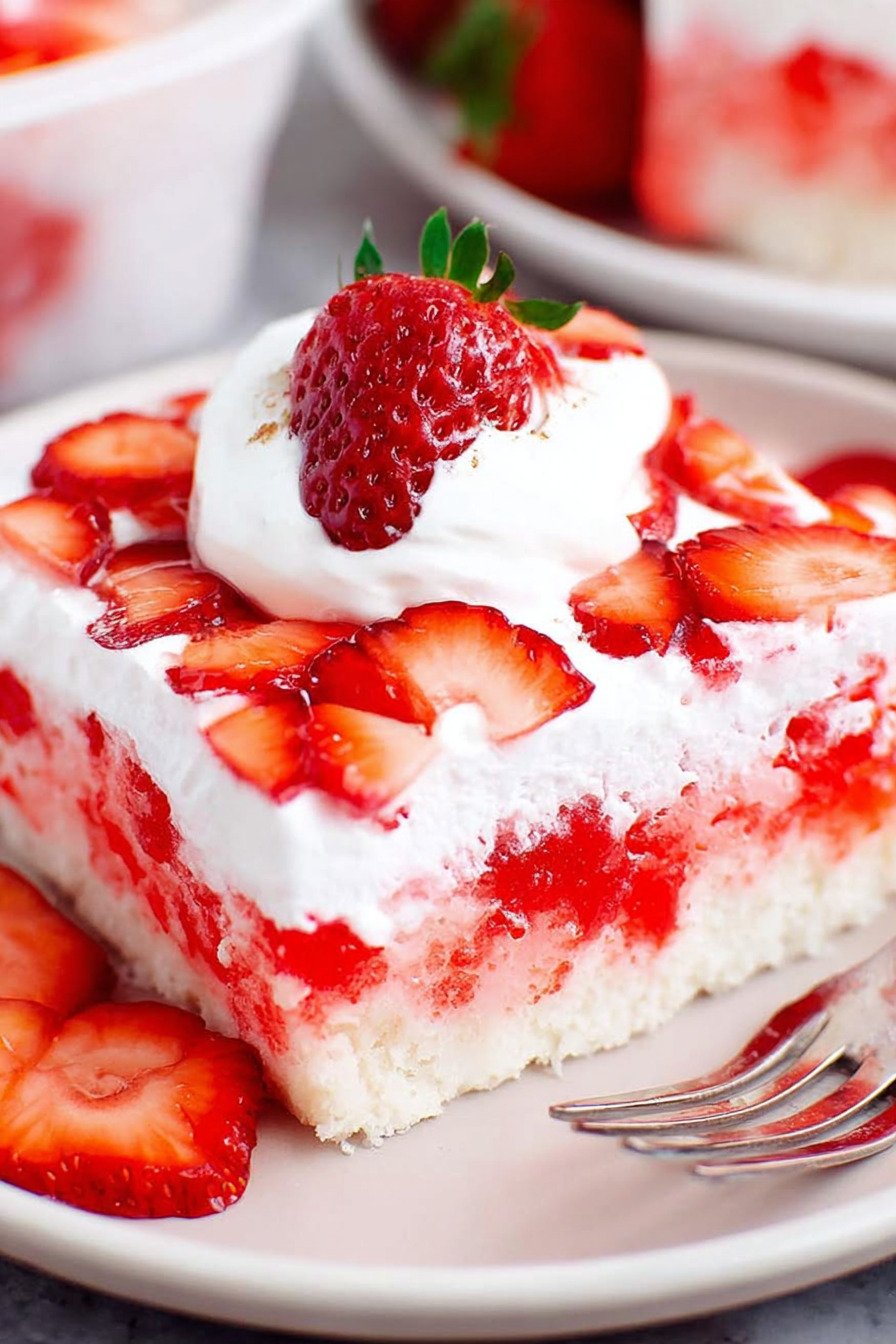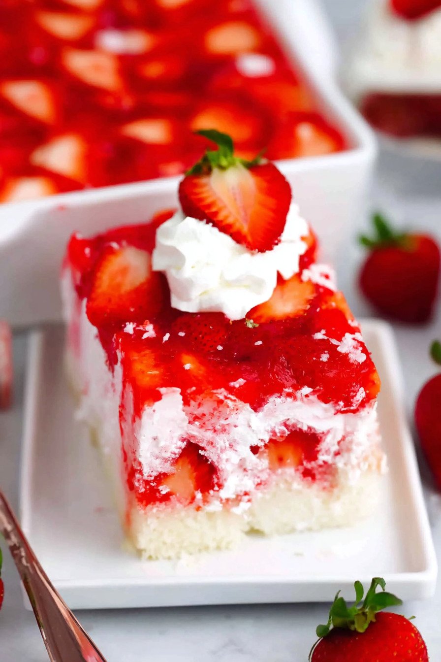 As part of the Cakes Recipes category, this dessert fits beautifully alongside birthday cakes, summer sheet cakes, and make-ahead party sweets. The tender cake is filled with sweet strawberry gelatin, making it similar to a classic jello poke cake recipe, but with a fresh, fruity finish that makes every slice look bakery-worthy.