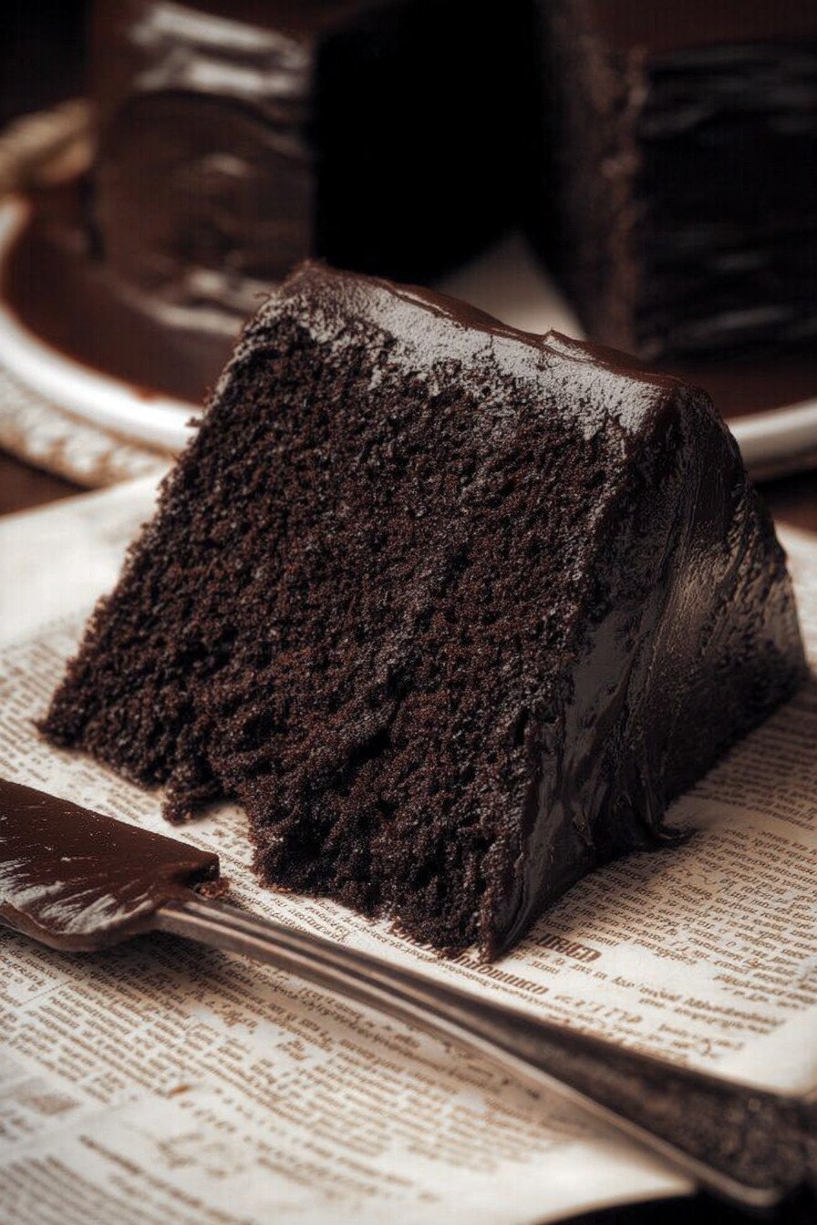 • This cake keeps a tender crumb and a glossy fudge finish, which means neat slices and clean plates.