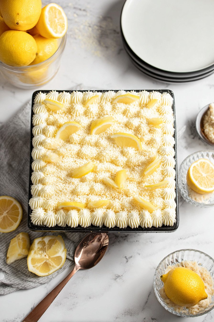 Step 6 Before serving, garnish with extra lemon zest or a light decorative finish if desired. Slice and serve cold for the most refreshing texture and flavor.
