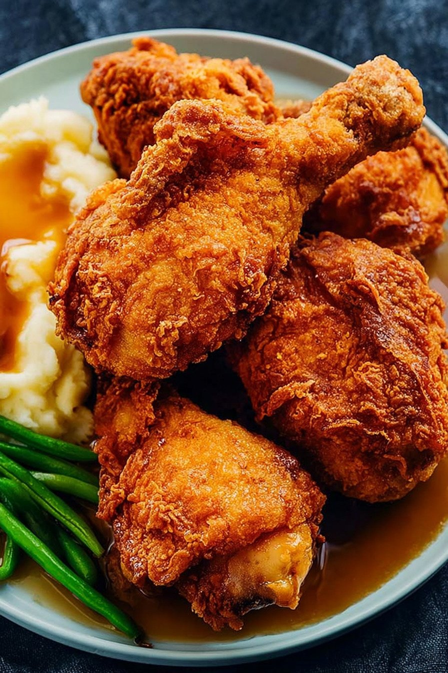 This fried chicken legs recipe gives you bold spice, deep crunch, and juicy meat in every bite. I use a rich soak and a seasoned flour blend that clings tight to the chicken. When we fry at the right heat, the crust turns golden and crisp, and the inside stays tender.