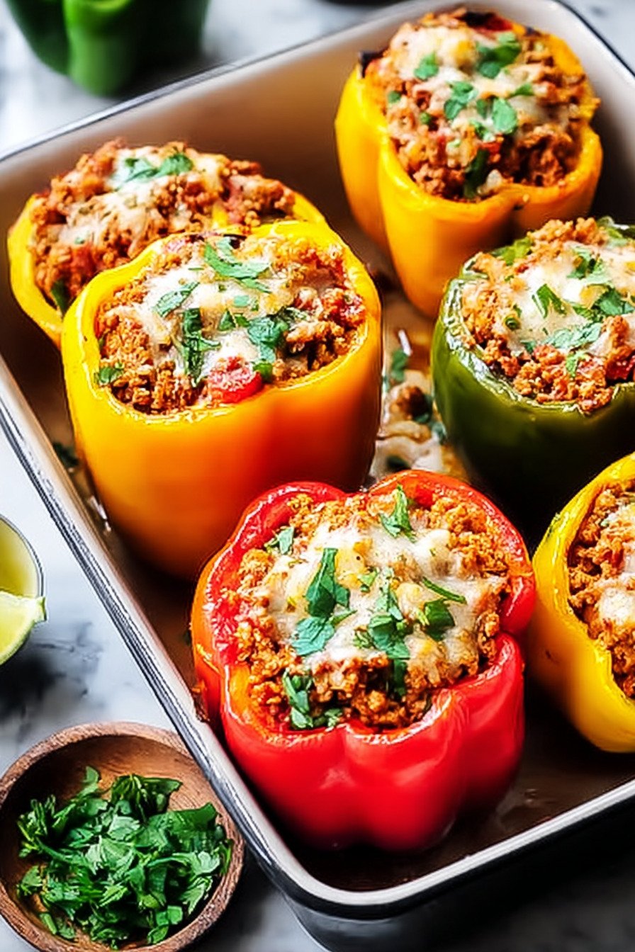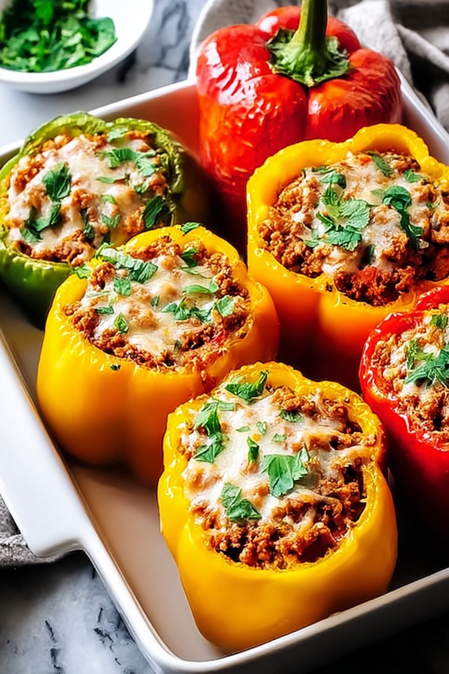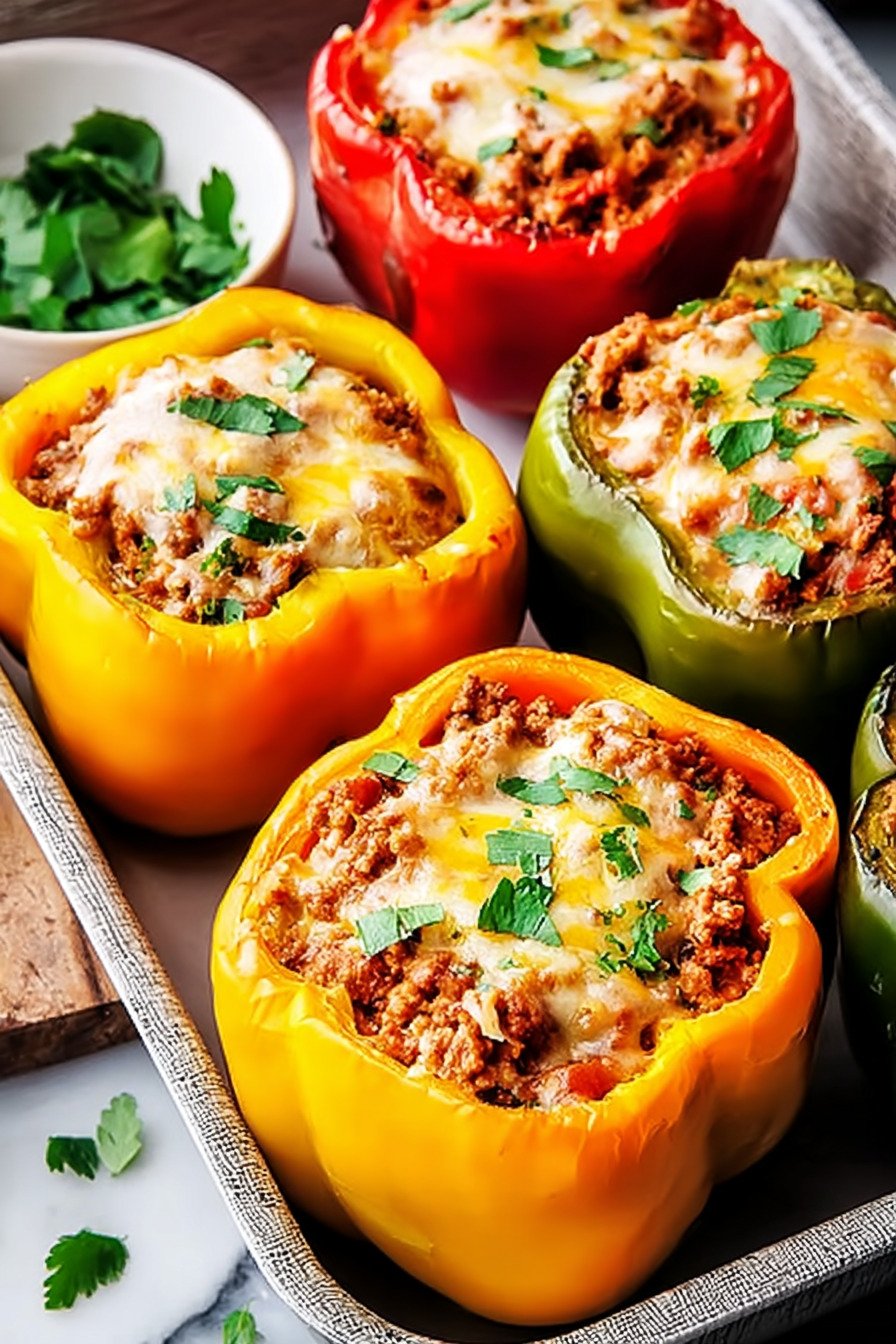 We brown turkey and fold in rice and tomato. We spoon the mix into bell peppers that sit tall. Heat softens the walls and keeps the filling moist. The smell fills the hall and draws people to the table.