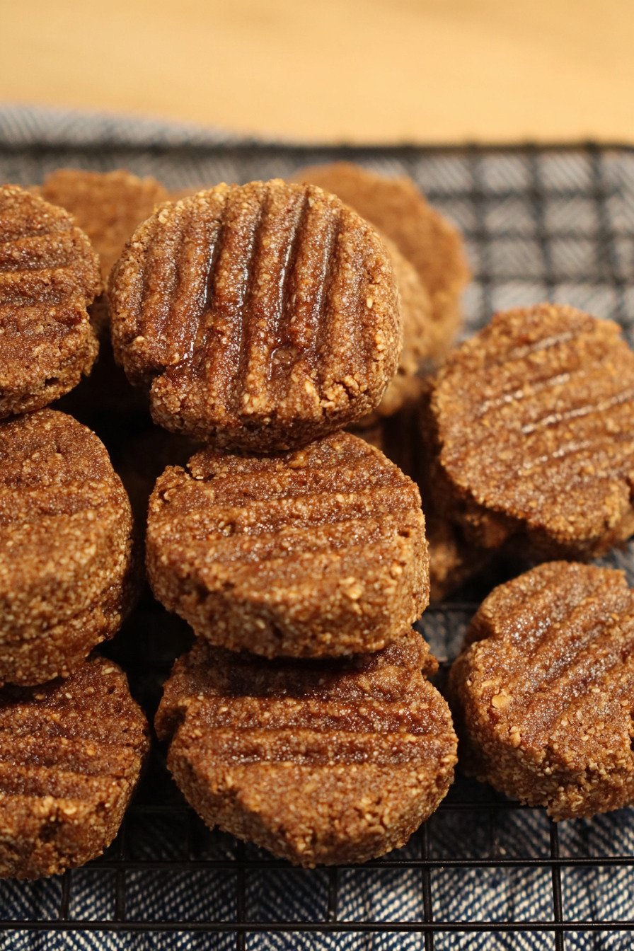 Creamy nut butter I use almond or peanut butter with no added sugar. The nut butter binds the dough and adds lush mouthfeel. It rounds the sweetness and helps the cookies brown. If your jar has no salt add a tiny pinch to wake the flavors. That little move matters.