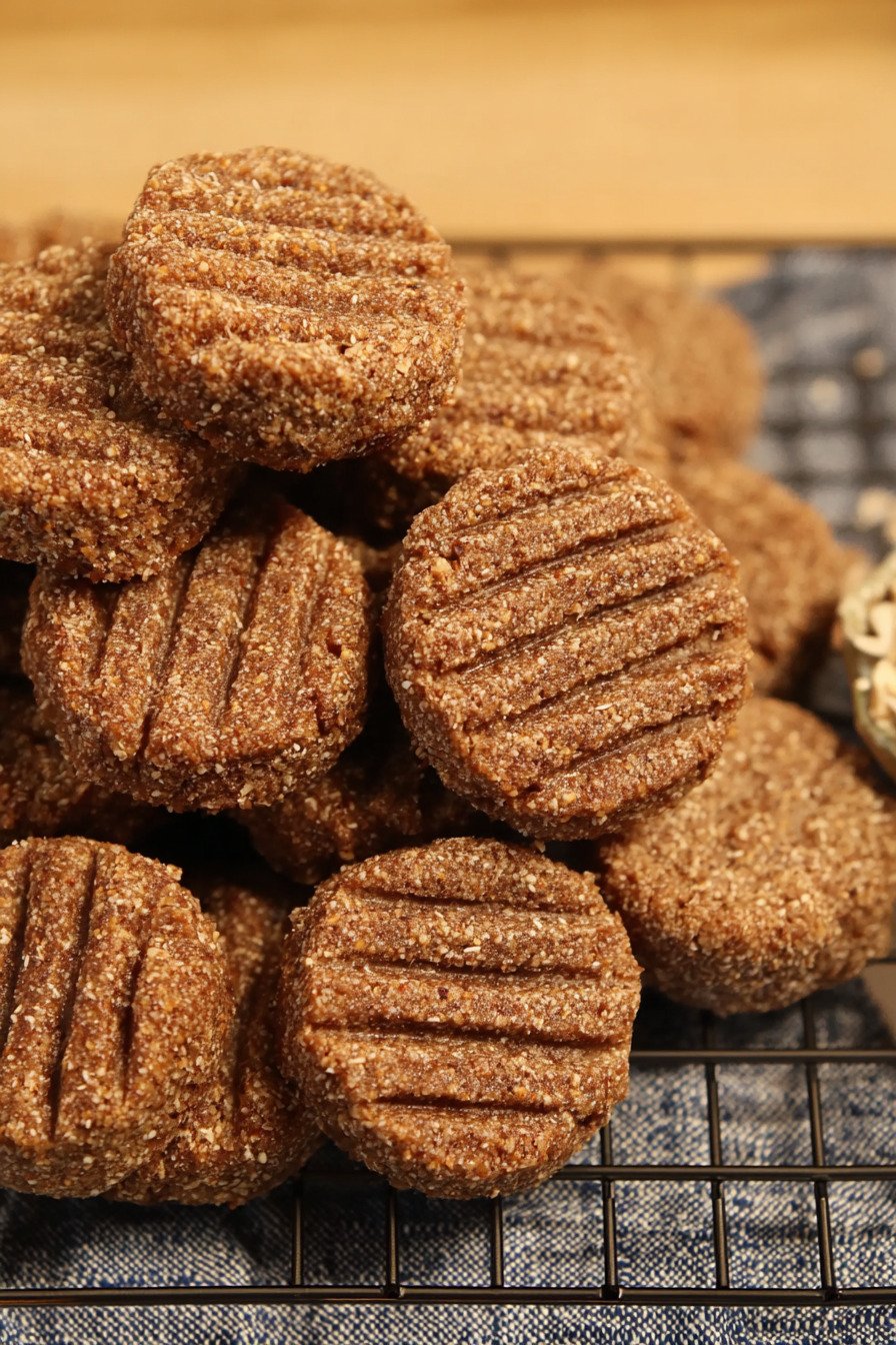 Oats quick or lightly pulsed rolled Oats lend body and a cozy bite. Quick oats keep the crumb fine and even. Rolled oats give more texture after a short pulse in a processor. Either way the oats drink in the date paste and bake into soft centers with light crisp rims.