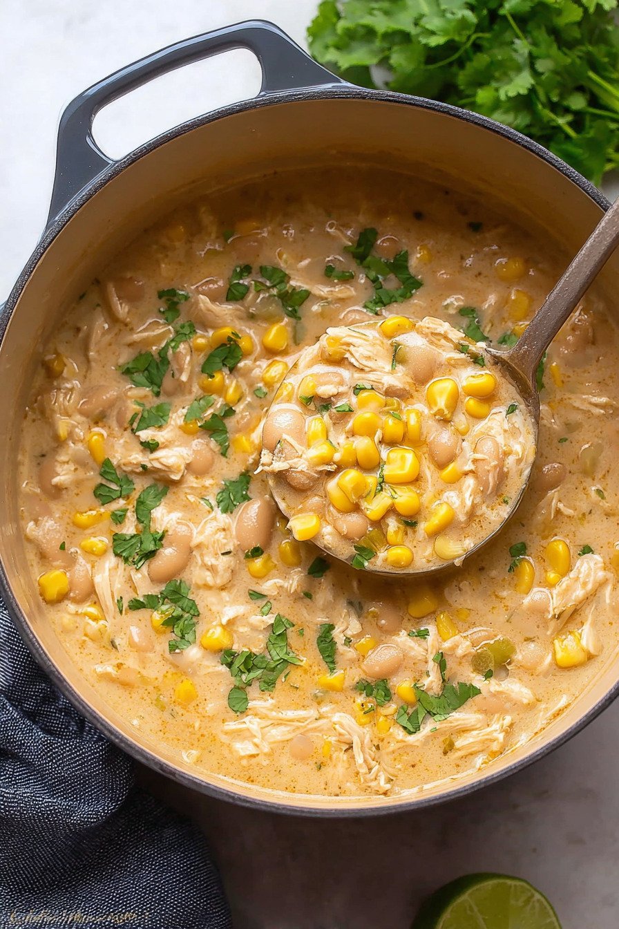 This bowl sits near Instant Pot Chicken Recipes and Best White Chicken Chili in your notes. A typical serving brings about three hundred sixty calories with a good share of protein. Sodium stays moderate if you pick low sodium broth.