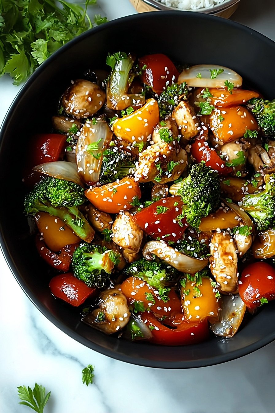 The heat stays high and the steps stay short. I slice chicken thin and I let the veg keep a little snap. The sauce uses soy garlic and ginger. The skillet sings and dinner lands fast.