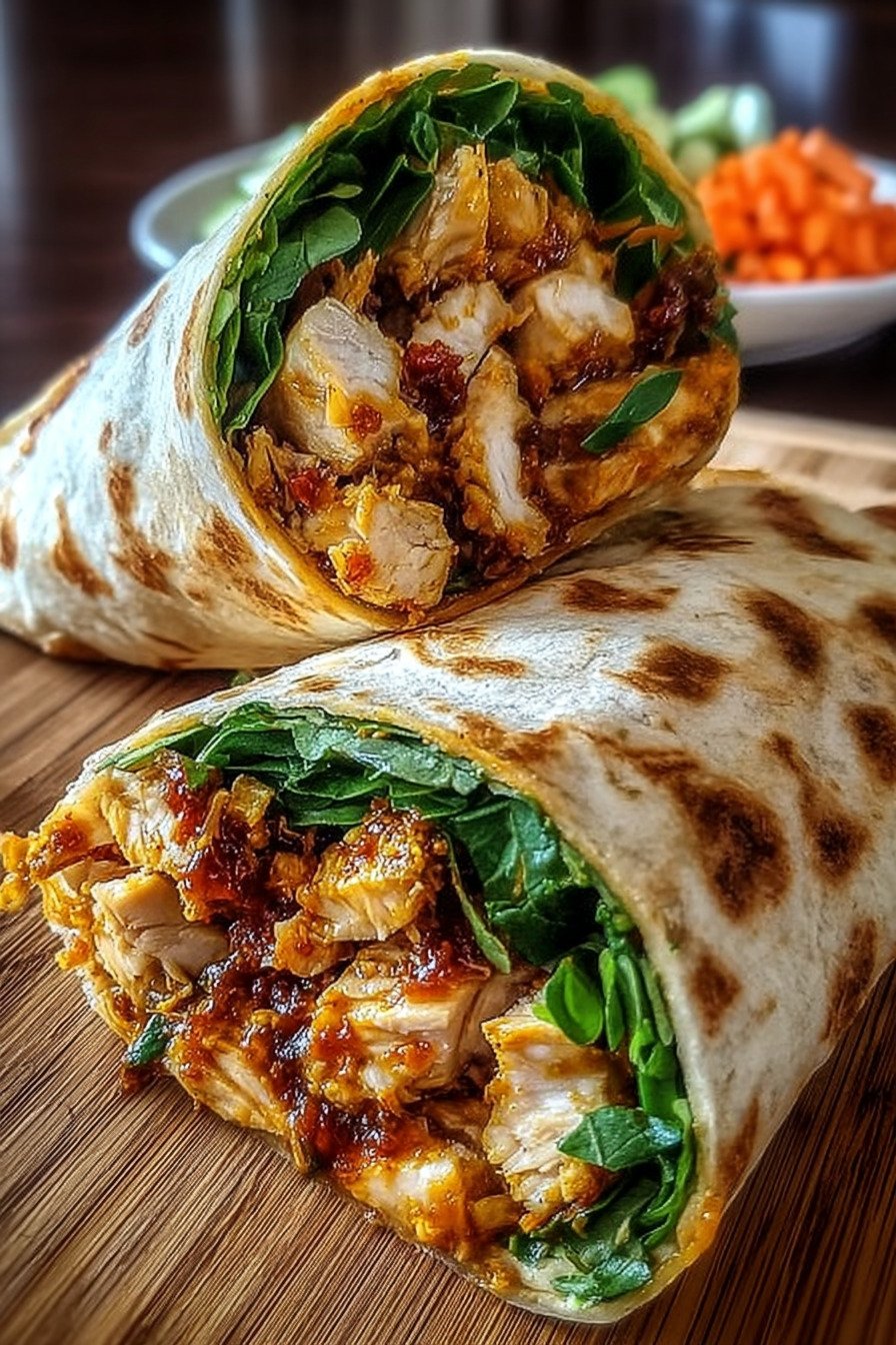 I make these sweet chili chicken wraps when the day runs fast and I need a calm win. Tender chicken meets a glossy sweet chili glaze, then crunch joins in with cool lettuce and bright carrot. The tortillas fold, the kitchen smells warm, and lunch lands without fuss. This works for busy weeks and for quiet Sundays too. It fits meal prep like a glove and tastes fresh even after a chill. Main thought here is simple food done right. You asked for flavor that leans sweet then nudges heat. That is what this brings, and it pairs well with the phrases we all search for when hunger calls. Meal Prep Recipes sits at the center, and I nod to sweet and spicy chili recipe and spicy food recipes plus Spicy snacks recipes and spicy snacks recipes and chili recipes and spicy dinner recipes. I keep the steps short, the cuts clean, and the textures lively. I like to pack two wraps for later. One waits in the fridge, the other travels in a lunch box. When noon shows up, I grab the wrap and take a bite. Soft tortilla, juicy chicken, crisp veg, light tang from lime. Good food, kind on time, easy on the wallet, and friendly to routine.