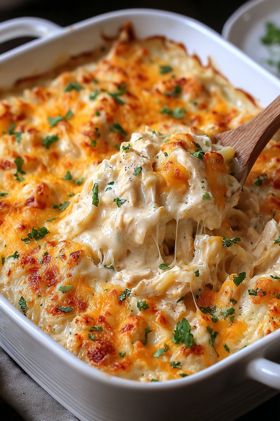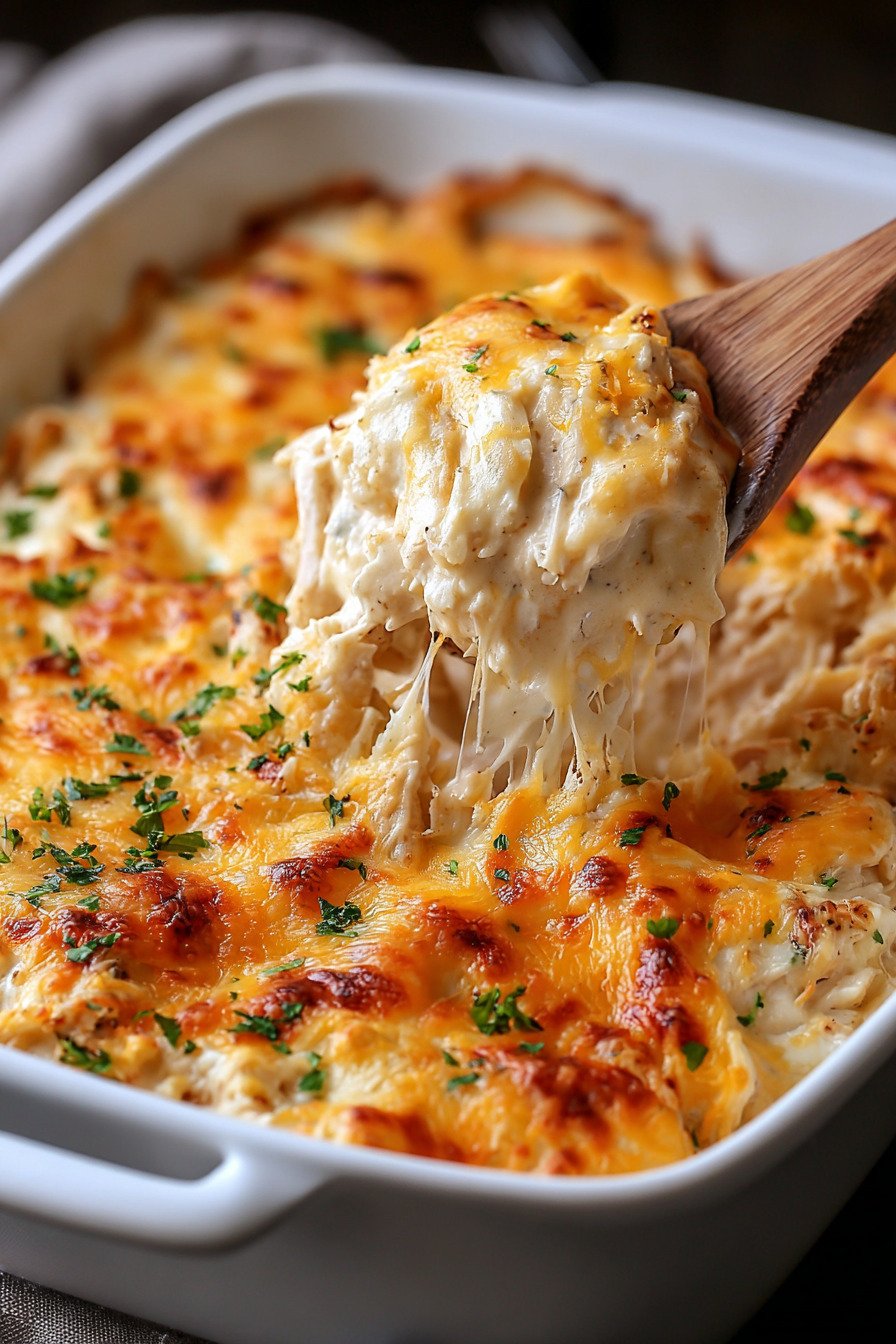 If you want to lighten the dish, you can substitute Greek yogurt for sour cream or use reduced-fat cheese. Even with these changes, the dish still holds up well among classic Chicken Casserole Recipes and maintains its creamy appeal.