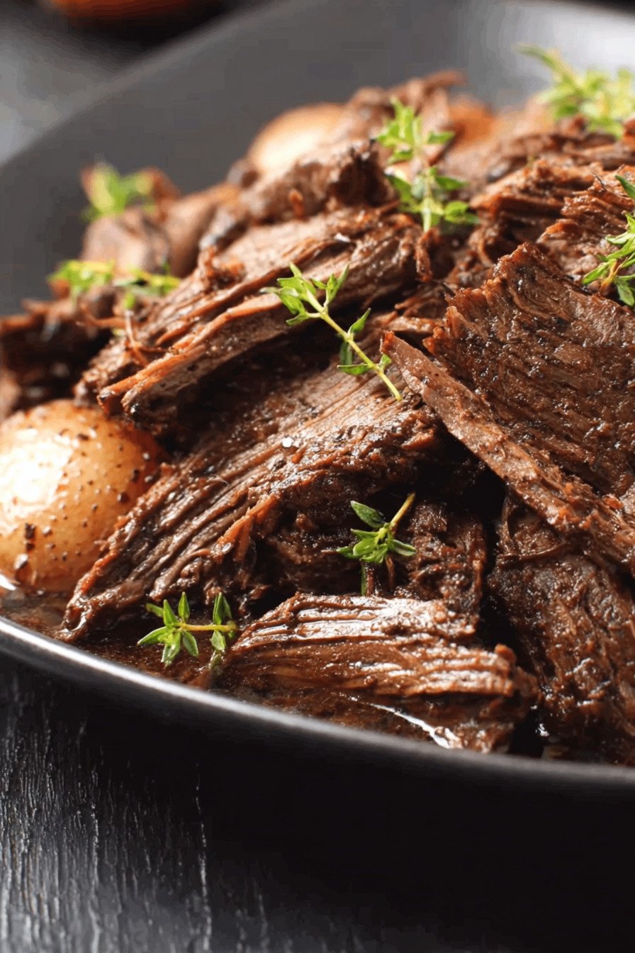 I often cook this roast the day before guests come. The flavor rests and grows. I chill the pot overnight. The fat sets on top and lifts clean the next day. I warm the meat in the gravy on low heat and add a splash of broth to loosen it.