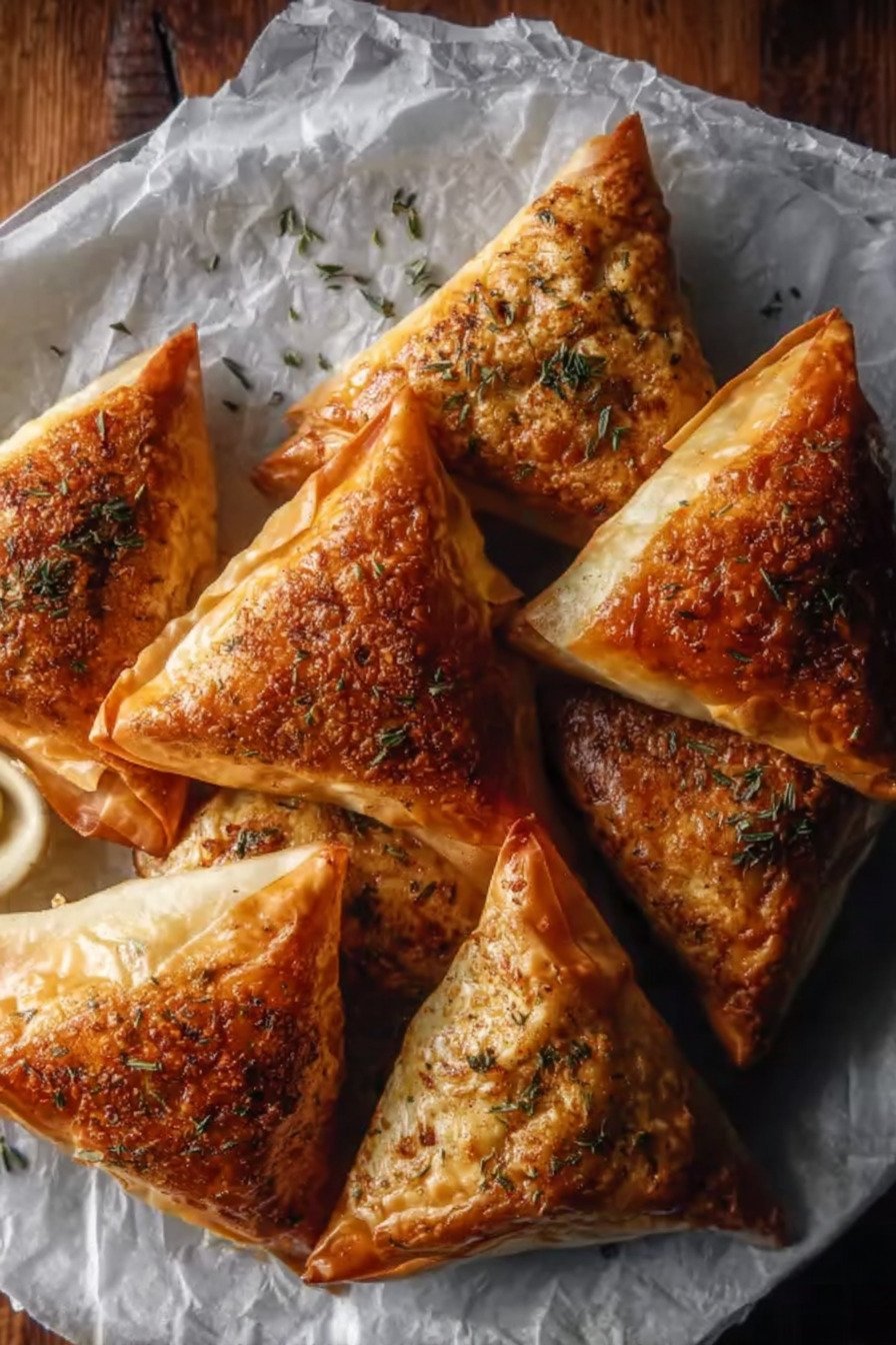 Each triangle feels light in the hand yet satisfies with tender chicken and flaky pastry. A serving offers a balanced mix of protein, carbs, and a touch of fat. For a brighter plate, add crunchy cucumbers, ripe tomatoes, and a spoon of yogurt for cream and tang.