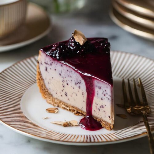 This cheesecake isn’t shy. It starts strong with crushed cookies, then leans into soft, creamy cheese with a swirl of Earl Grey and bursts of mulberries. If you’ve been collecting cheesecake cookies recipes like trading cards, this one earns a top spot.