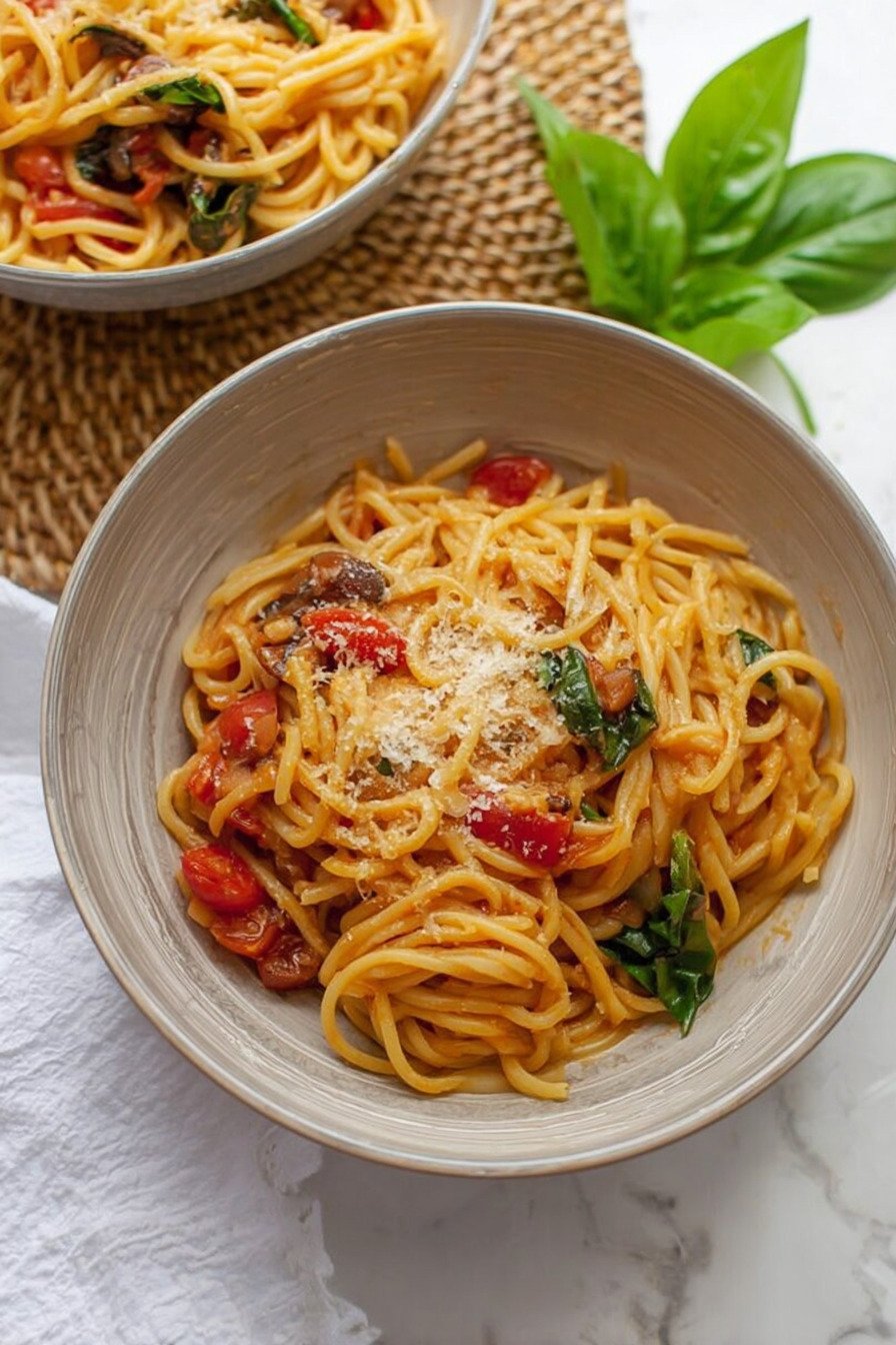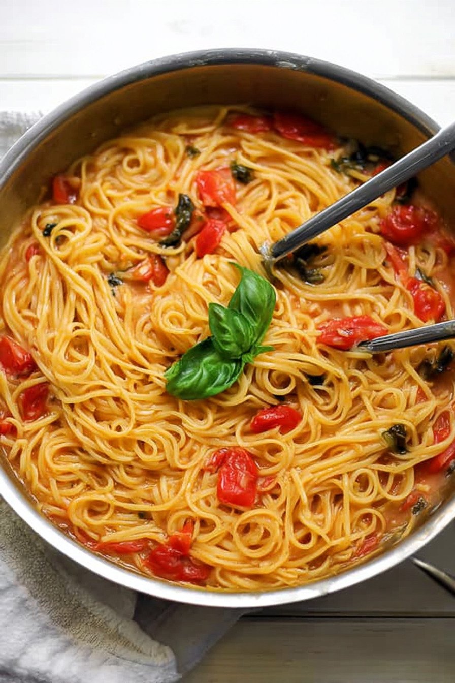 I make dinner in one pan and I feel calm. Water meets pasta, tomatoes melt into a quick sauce, and basil wakes the room. I like how the starch thickens the liquid and turns glossy. Fewer dishes, more flavor, and the fork twirls like it has a job to do. This is comfort on a weeknight pace. I wrote this as one clear guide for One Pan Pasta Recipes. I use ideas from pasta recipes that I trust and fold them into one plan. I lean on one pan recipes when life runs fast. For fun I add a handful of chicken for fans of chicken pasta recipes and I keep the steps short for easy pasta recipes. If you love pasta recipes homemade, this checks that box without fuss. I use honest pantry items and fresh herbs, nothing loud. It tastes clean and bright and fits the list of healthy pasta recipes I cook for friends. You will hear a soft bubble, smell garlic, and feel the sauce cling to each strand. That is the signal to eat.
