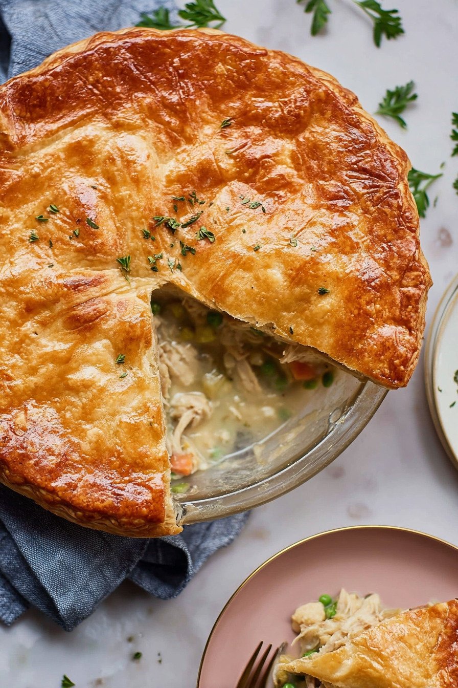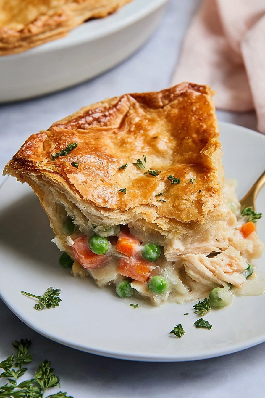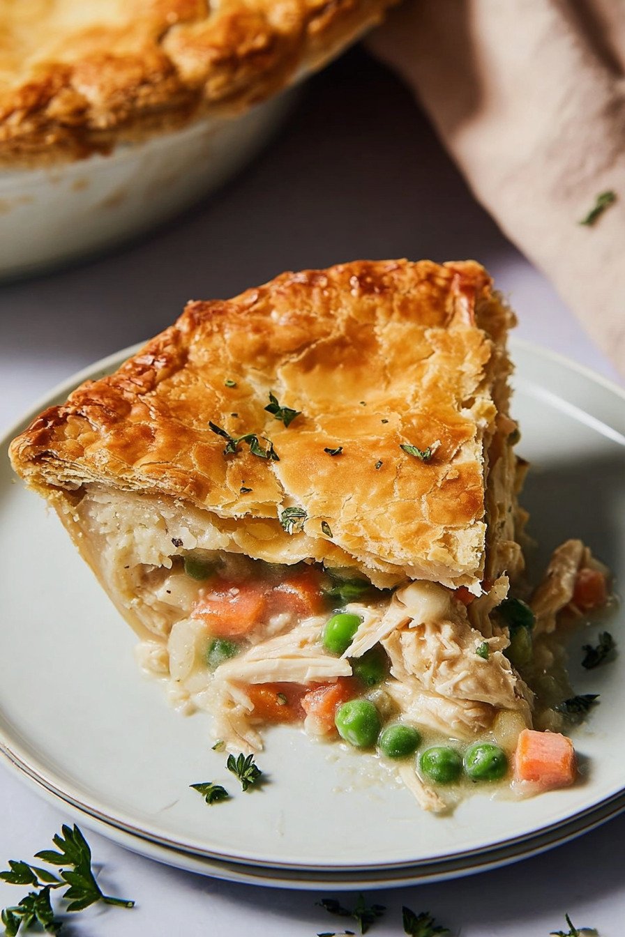 Pie Crust: You can’t have a pot pie without a flaky, golden crust. You can either use store-bought pie crust or make your own if you’re feeling extra. Either way, it bakes up crisp and buttery, the perfect topper for your chicken and veggie filling.