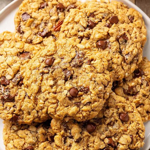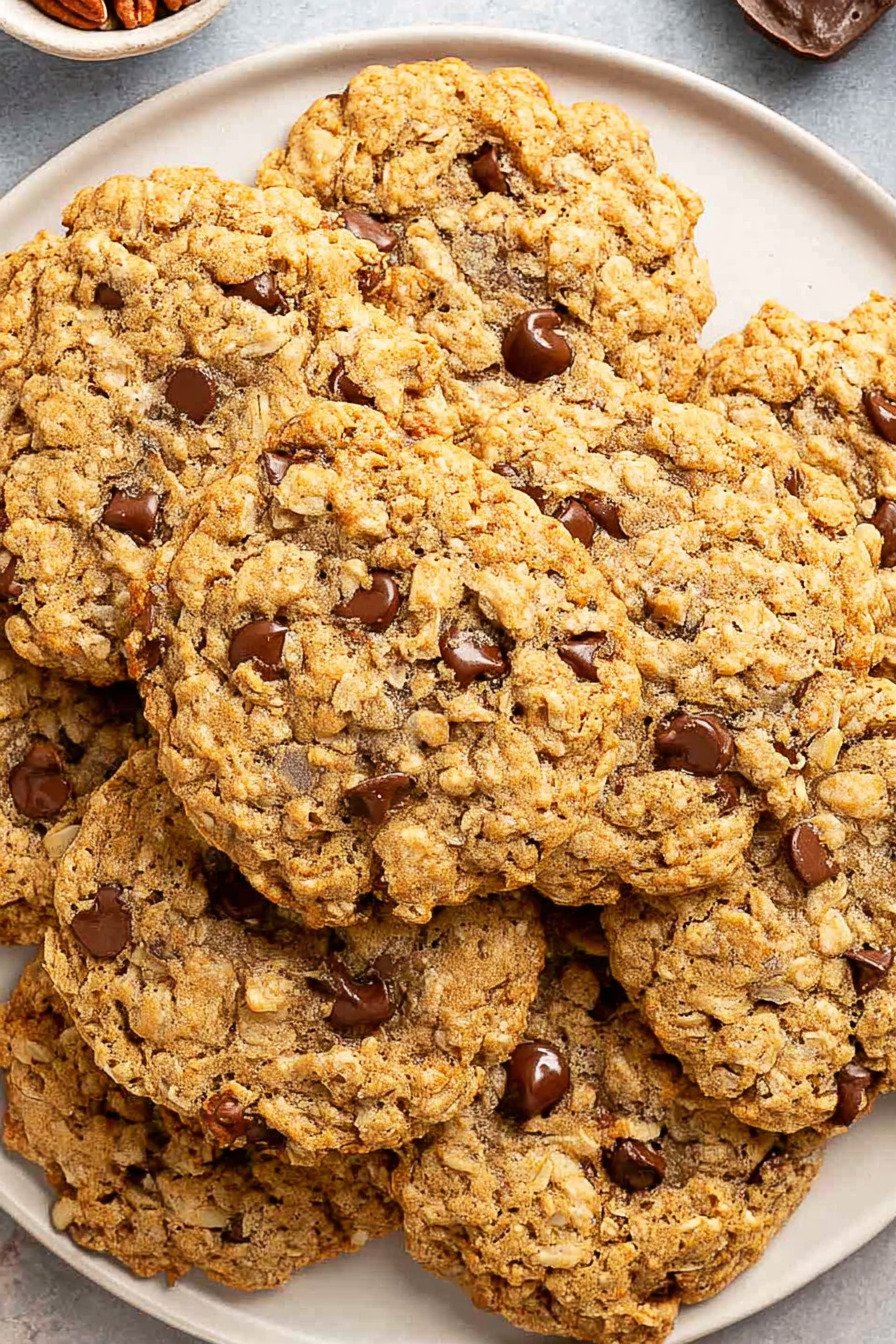 • This oatmeal chocolate chip cookie recipe bakes up chewy, hearty, and packed with rich flavor from oats, chocolate chips, and classic cookie mix-ins.