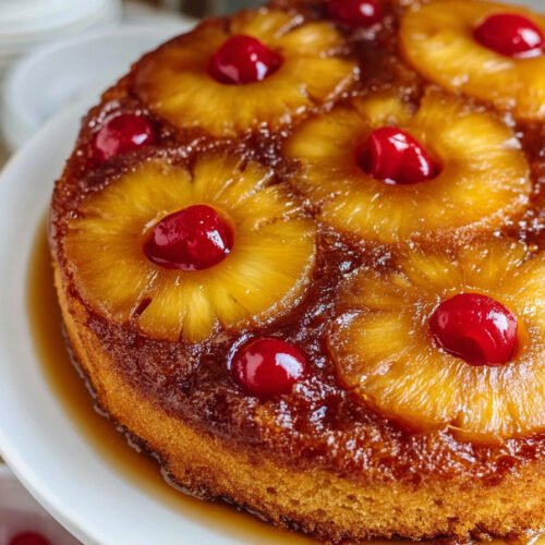 Use room temp eggs and milk. Cold batter slows rise. Warm batter traps air and bakes light. That helps this classic pineapple upside down cake keep a tender crumb under the syrupy crown.