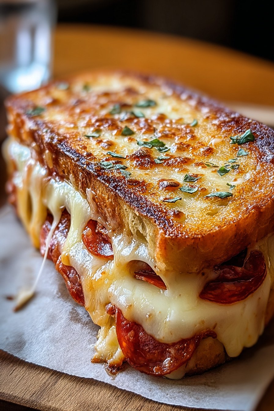 Pepperoni Optional and fun. It gives a smoky edge and a meaty chew. I blot it with a paper towel to keep the sandwich crisp. If you skip meat you still get plenty of flavor from the cheese and herbs.
