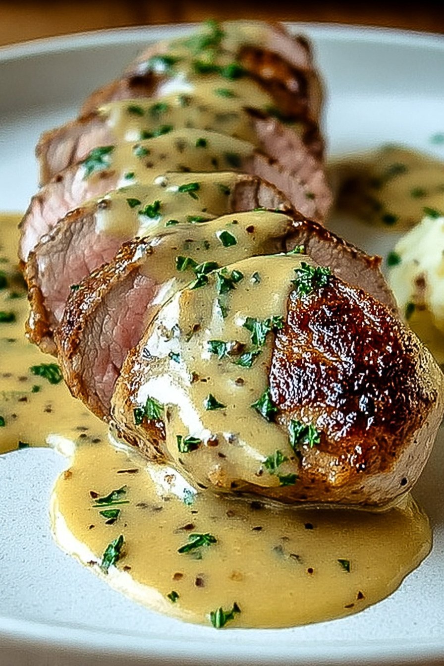 - Spoon the Dijon cream sauce over the slices. Sprinkle with extra parsley.