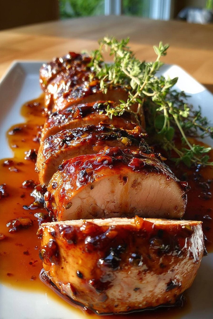 The glaze brings sweet and tangy notes in balance. The oven gives even heat. The roast rests and the slices stay juicy.
